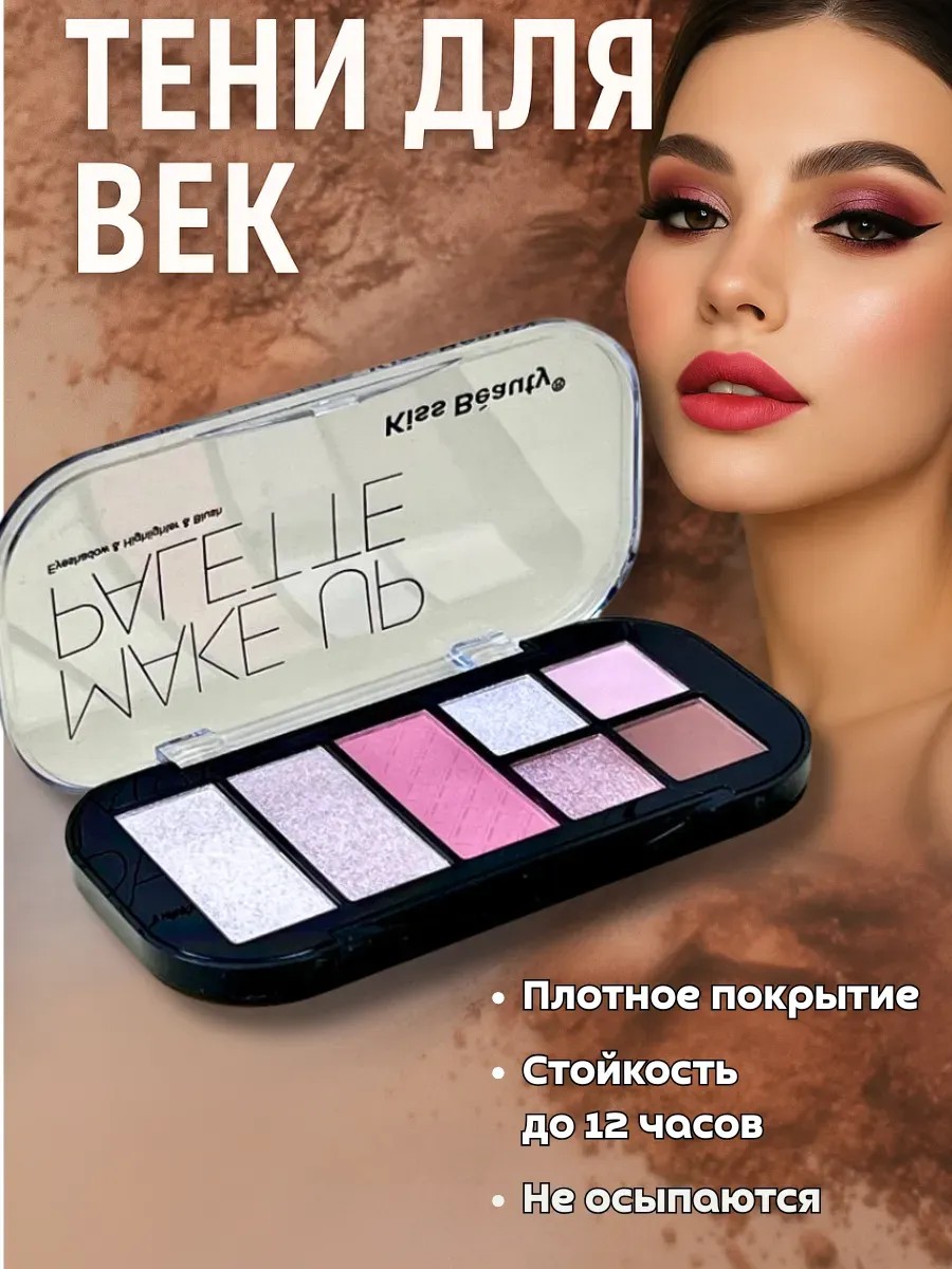 Палетка теней для век 7 оттенков — идеальное решение для создания как повседневного, так и вечернего макияжа. В составе — тени шиммерные для век с деликатным сиянием, подчёркивающим взгляд и придающим глазам выразительность. Формула обеспечивает лёгкое нанесение и равномерное распределение цвета без осыпания, благодаря чему макияж держится на протяжении всего дня. Тени для век блестящие, сухие, светлые оттенки хорошо ложатся как на сухую, так и на влажную базу, позволяя варьировать насыщенность и эффект.