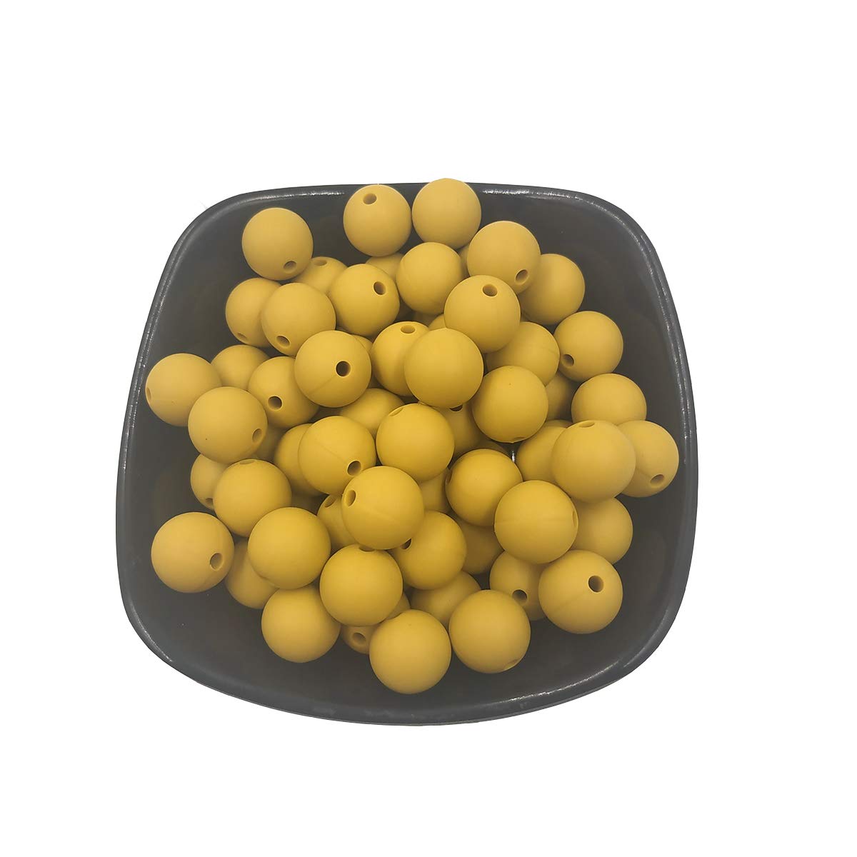 Alenybeby 100pcs Silicone Round Beads 12mm Silicone Pearl Beads for Bracelet DIY Beading Mom Jewelry Necklace Making Accessories (Mustard)