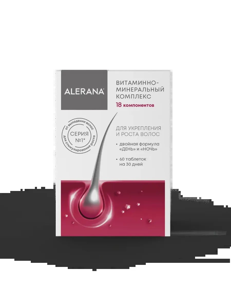 ALERANA vitamin and mineral complex for intensive nutrition of hair follicles and replenishment of vitamin deficiencies.