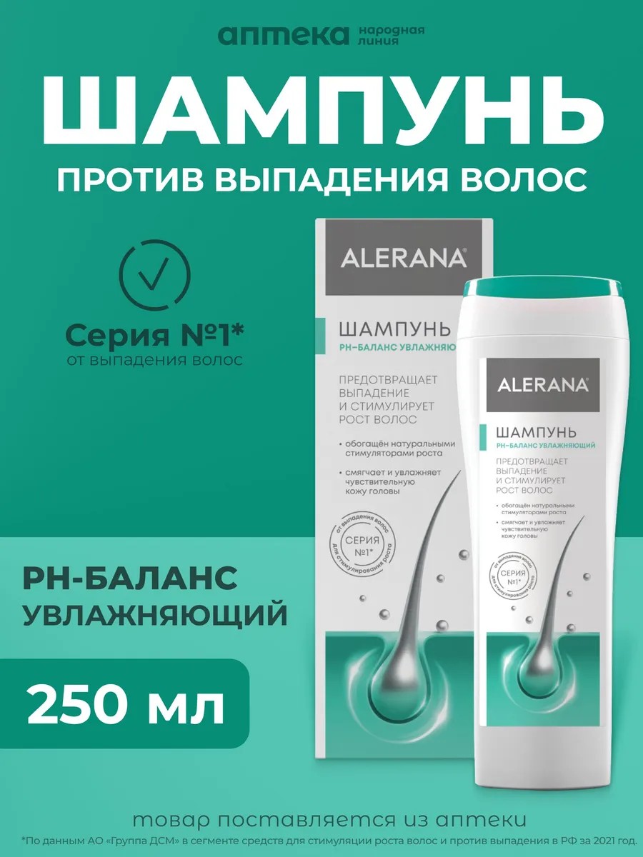 Алерана pH баланс увлажняющий – безсульфатный шампунь от выпадения волос. Средство предназначено для сухих и повреждённых волос, шампунь содержит комплекс натуральных ингредиентов, который позволяет увлажнить и укрепить волосы, а также предотвратить ломкость и сечение кончиков. Формула шампуня Алерана бережно очищает волосы, сохраняя естественный pH баланс кожи головы. Шампунь безсульфатный не вызывает раздражения кожи и не содержит парабенов и сульфатов.