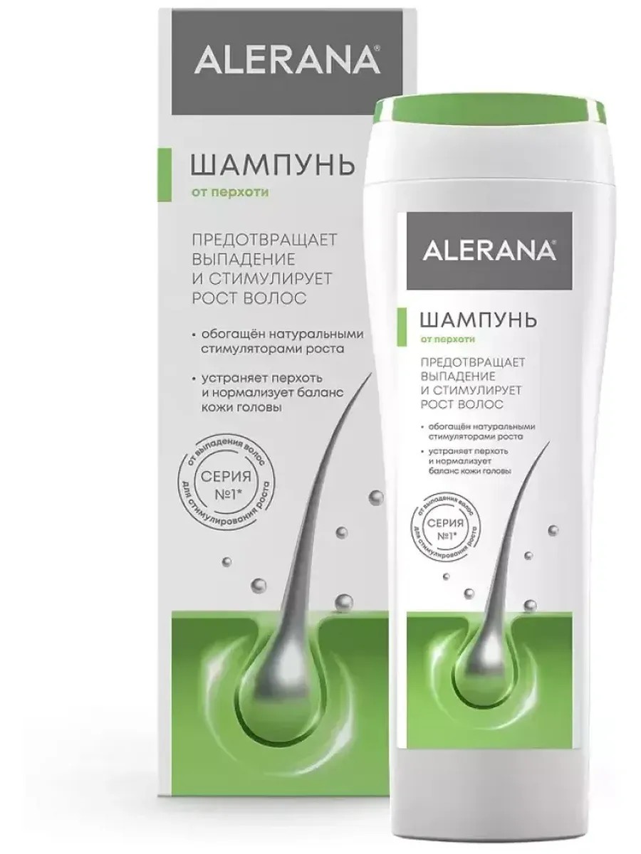 Перхоть не только причиняет нам мелкие неприятности - белые хлопья на одежде, зуд кожи головы, но и провоцирует выпадение волос! Перхоть затрудняет доступ кислорода к волосяным фолликулам, что затрудняет их питание, снижает жизнеспособность фолликулов. Поэтому так важно, устраняя перхоть, одновременно обеспечить волосяные луковицы дополнительным питанием, простимулировать рост волос. Шампунь ALERANA рекомендован для устранения перхоти, восстановления нормального баланса кожи головы и укрепления ослабленных волос. Стимулирует клеточный метаболизм в волосяных фолликула. Блокирует размножение грибка, вызывающего перхоть. Устраняет шелушение кожи головы, увеличивая доступ кислорода к волосяным луковицам. Улучшает питание и оздоравливает волосы. Небольшое количество шампуня нанести на влажные волосы, взбить пену, интенсивно помассировать кожу головы и оставить не менее чем на 3 минуты, затем смыть теплой водой. Максимальный результат достигается при регулярном применении шампуня. Подходит для постоянного использования в качестве основного средства для мытья кожи головы и волос, в том числе для ежедневного использования.