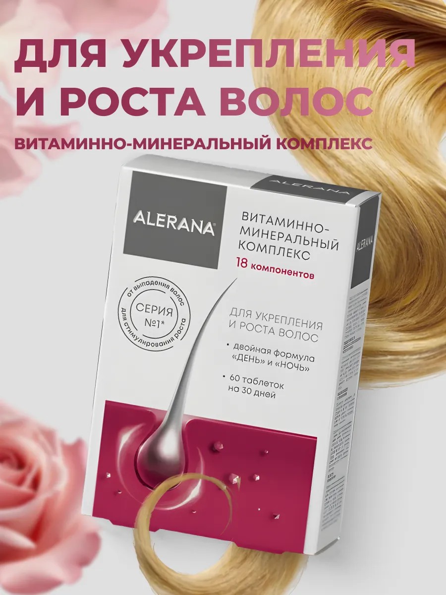 Алерана витаминно-минеральный комплекс — это эффективный витаминный комплекс для роста и укрепления волос. Он помогает снизить выпадение волос, улучшить их структуру и вернуть естественный блеск. Комплекс содержит тщательно подобранные витамины и минералы, которые способствуют укреплению волос и ногтей, а также поддерживают здоровье кожи.