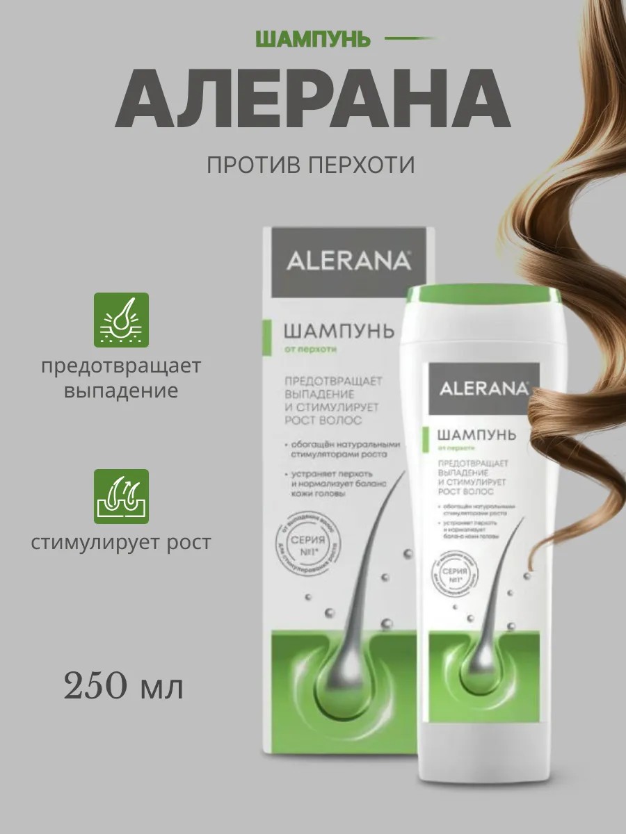 Shampoo with an active antifungal component ALERANA helps eliminate dandruff, restore scalp balance and prevent hair loss.Shampoo with an active antifungal component ALERANA helps eliminate dandruff, restore scalp balance and prevent hair loss.The shampoo contains a combination of active ingredients with proven effectiveness, which:blocks the proliferation of fungi that cause dandruffeliminates flaking of the scalp, increasing oxygen supply to the hair folliclesactivates cellular metabolism in the hair follicles, preventing hair lossResults: strong hair and a healthy scalp without dandruff and itching, active nutrition of the follicles prevents hair loss.Ingredients:Sodium Laureth Sulfate, Cocamidopropyl Betaine, Lauryl Glucoside, PEG-7 Glyceryl Cocoate, PEG-4 Rapeseedamide, Panthenol, Piroctone Olamine, Sodium Chloride, Parfum, Citric Acid, Polyquaternium-10, Pisum Sativum (Pea) Sprout Extract/Phenoxyethanol/Sodium Benzoate, Ocimum Basilicum Hairy Root Culture Extract/Sodium Benzoate, Hydrolyzed Keratin, Methylchloroisothiazolinone/Methylisothiazolinone, Aqua. Directions: Apply a small amount of shampoo to damp hair, work into a lather, massage the scalp vigorously, and leave on for at least 3 minutes, then rinse with warm water. For best results, use regularly. Suitable for daily use as a primary scalp and hair wash. Packaging: 250 ml bottle. Antiparasitic agents; Skin conditions; Hair conditions; Dandruff.
