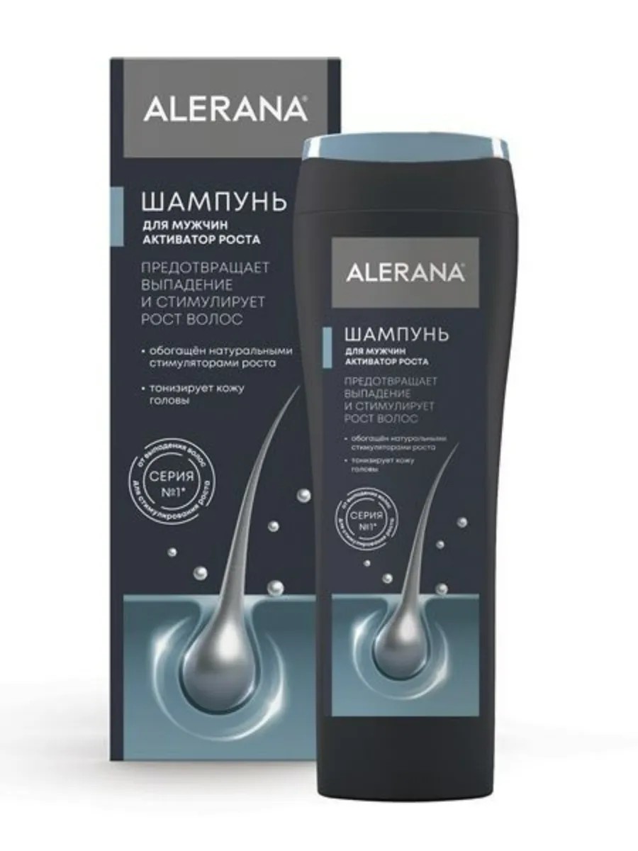Алерана (alerana) шампунь для мужчин активатор роста – это средство, разработанное специально для ускорения роста волос и укрепления их корней. Формула шампуня содержит ниацинамид, экстракты лопуха, конского каштана, шалфея, женьшеня и другие компоненты, которые способствуют увеличению кровообращения и питанию волосяных луковиц.