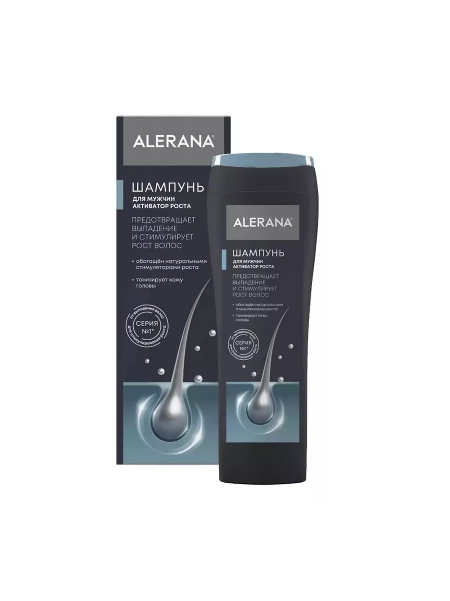 Шампунь Алерана с укрепляющим эффектом разработан специально для мужчин с тонкими, ослабленными, склонными к алопеции волосами. Формула средства подобрана с учетом особенностей структуры мужских волос и кожи головы. Это позволяет эффективно устранить загрязнения с волос, сделать их крепче, а прическу привлекательней. Эффект от применения: Главная задача мужского шампуня ALERANA – активизация роста волос. Дополнительными эффектами от применения являются: Интенсивное питание, очищение и тонизирование дермы головы, ее оздоровление;Питание и укрепление волосяных фолликулов; Восстановление структуры волос; Усиление микроциркуляции крови в эпидермисе, что оказывает воздействие на волосяные фолликулы, пробуждая их и стимулируя рост новых волосков; Предотвращение алопеции; Нормализация работы сальных желез. Шампунь обогащен стимуляторами роста натурального происхождения. Фармакологический эффект. Активные компоненты: Натуральный экстракт лопуха, гамамелиса, шалфея, масло чайного дерева и ниацинамид. Специально подобранный комплекс натуральных компонентов активизирует рост волос, восстанавливает структуру, питает и тонизирует кожу головы. Ниацинамид - активизирует микроциркуляцию крови, улучшает питание, насыщая волосяные фолликулы кислородом, увлажняет кожу головы и стимулирует рост волос. Масло чайного дерева - препятствует выпадению волос, укрепляет луковицы, нормализует работу сальных желез, обладает сильным антисептическим и противогрибковым действием, способствует устранению перхоти. Натуральный экстракт лопуха- останавливает процесс выпадения и способствует росту сильных и здоровых волос, усиливает обмен веществ, придает волосам здоровый блеск. Экстракт гамамелиса и шалфея - нормализуют деятельность сальных желез,оздоравливают и тонизируют кожу, предотвращают появление перхоти.