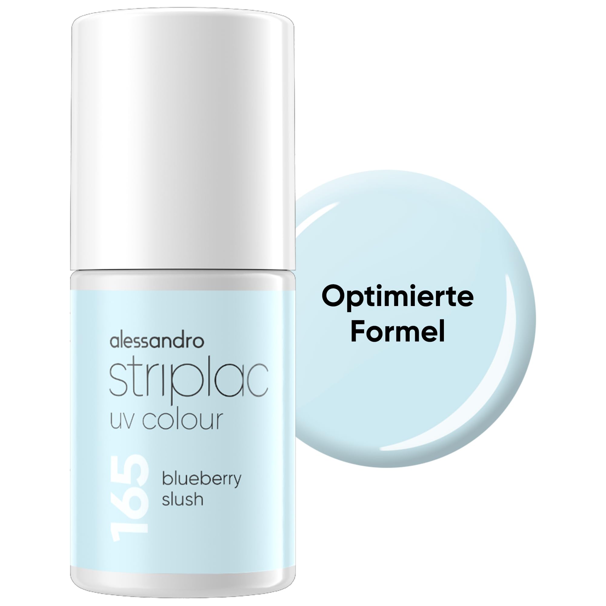 alessandro Striplac UV nail polish Blueberry Slush opaque and scratch resistant up to 15 days easy to apply gentle removal technology vegan pastel blue 65 ml