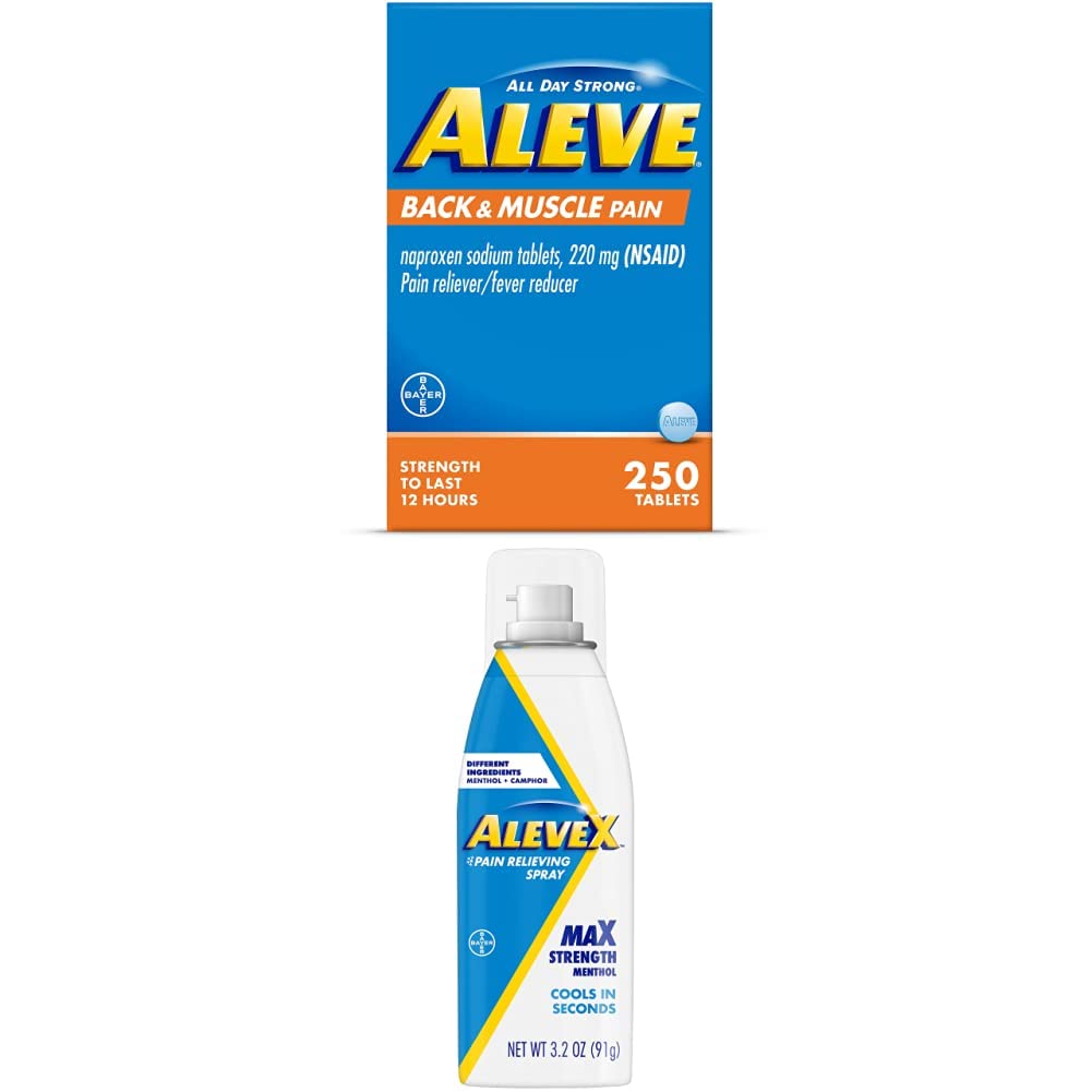 Aleve Back & Muscle with Naproxen 250 Count & AleveX Pain Relief Spray 3.2 Ounce Pain Relief
