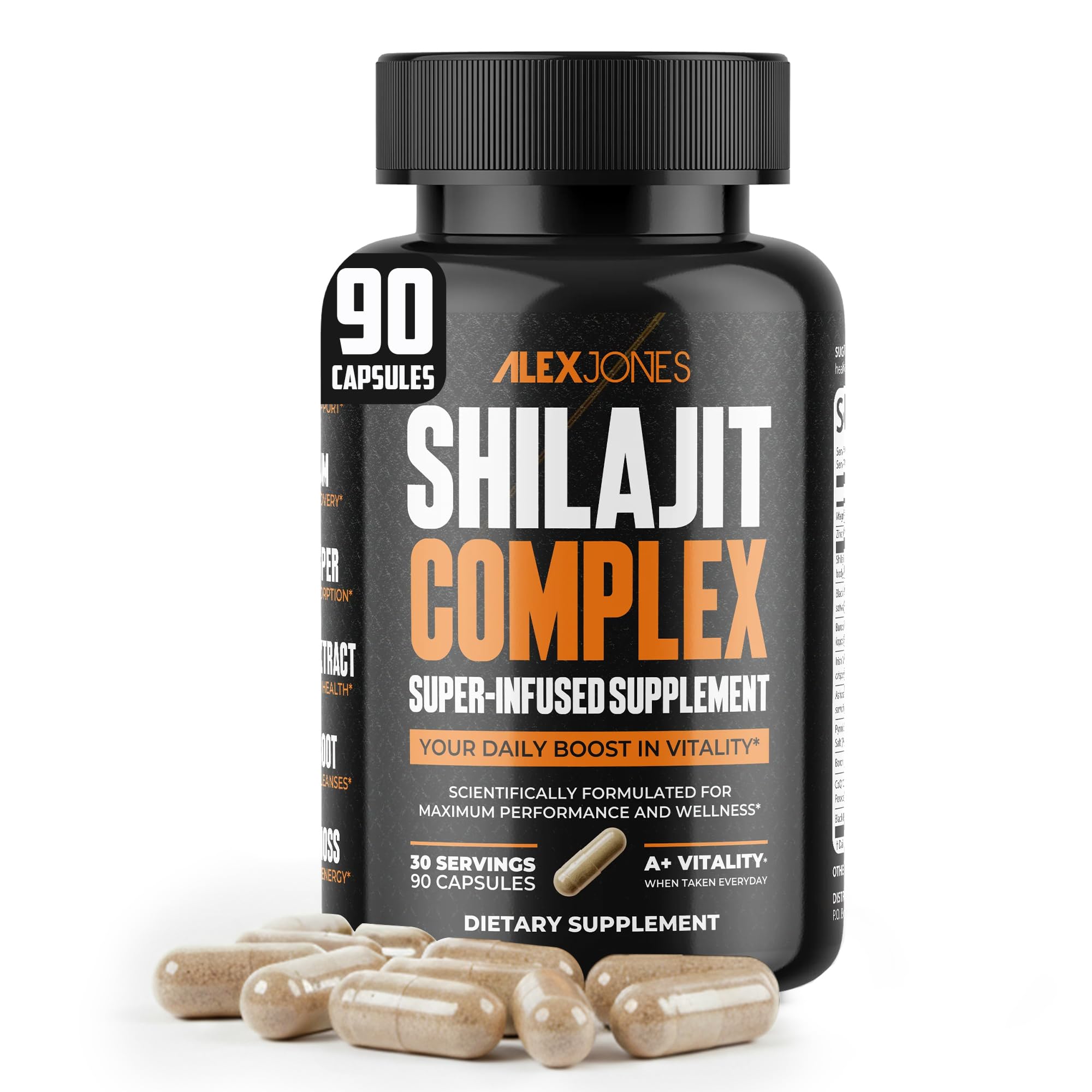 Alex Jones Naturals Maximum Vitality Shilajit Complex Multi-Herb Formula with Sea Moss Ashwagandha for Men & Black Seed Oil Shilajit Wellness Support 90 Count Capsules