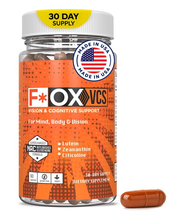 Made in USA, Vegan Gluten-Free – Manufactured in the USA under strict quality standards. Easy-to-swallow vegan capsules. Take two (2) daily with a snack or small meal for maximum absorption 30-day supply per bottle. Oxidative Stress Defense – Formulated with antioxidants to help protect cells from oxidative damage and support long-term brain and eye wellness. Eye Health Visual Function – Includes Lutein, and Zeaxanthin—concentrated carotenoids that support eye health, visual acuity, and defense against blue light and digital screen fatigue. Concentrated Brain Health Blend – Features Citicoline and NAC, essential nutrients that help support focus, memory, and brain energy for optimal cognitive performance. Advanced Vision Cognitive Support – F OX VCS (pronounced EFF-ox) is scientifically formulated to enhance both vision and cognitive performance for better overall health and mental clarity.