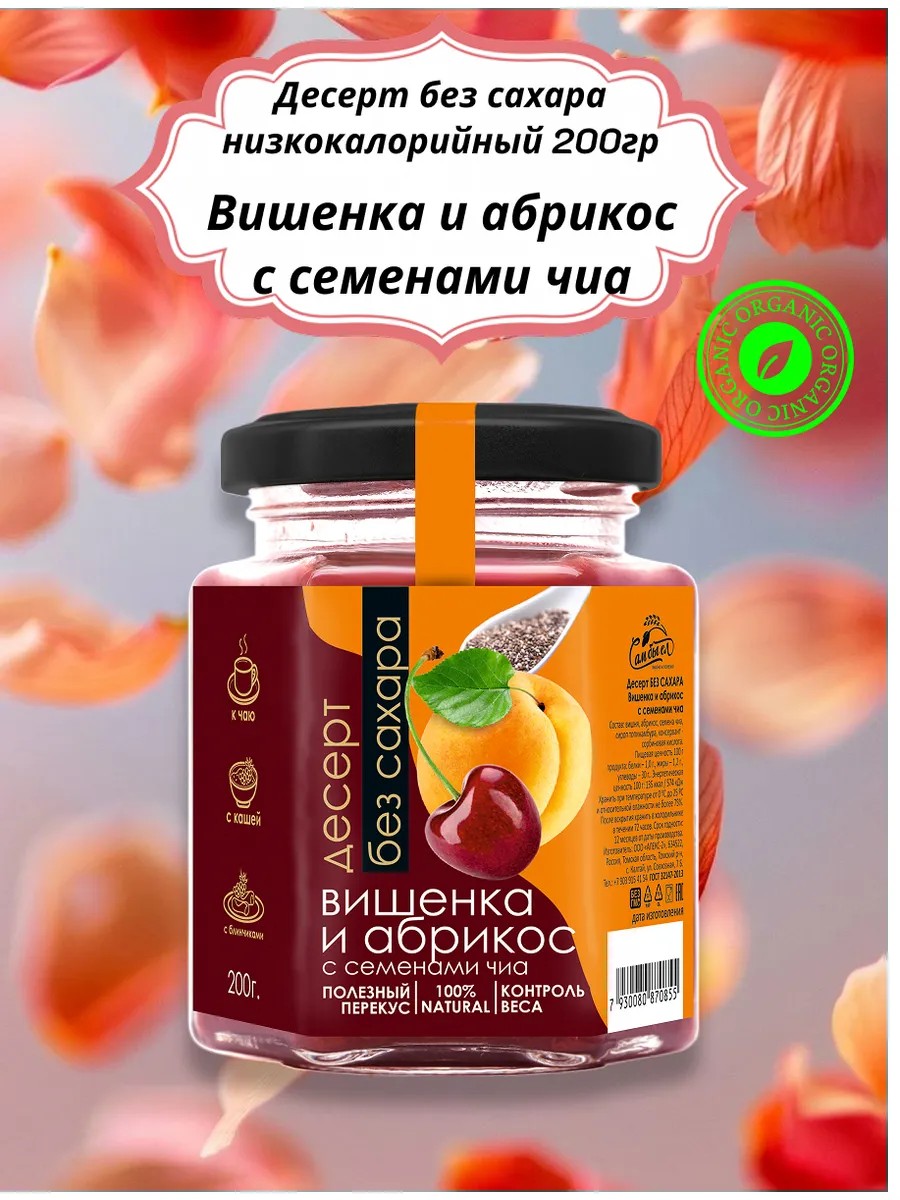 Насладитесь нежным низкокалорийным десертом с ярким вкусом вишни и абрикоса, дополненным полезными семенами чиа. Этот легкий и освежающий десерт сочетает в себе натуральную сладость спелых фруктов и текстуру семян, которые обогащают каждый ложечку полезными омега-3, клетчаткой и антиоксидантами. Идеальный выбор для тех, кто ценит вкус, заботится о фигуре и здоровье, а также стремится к правильному питанию. Прекрасно подходит в качестве легкого перекуса или здорового десерта после еды.