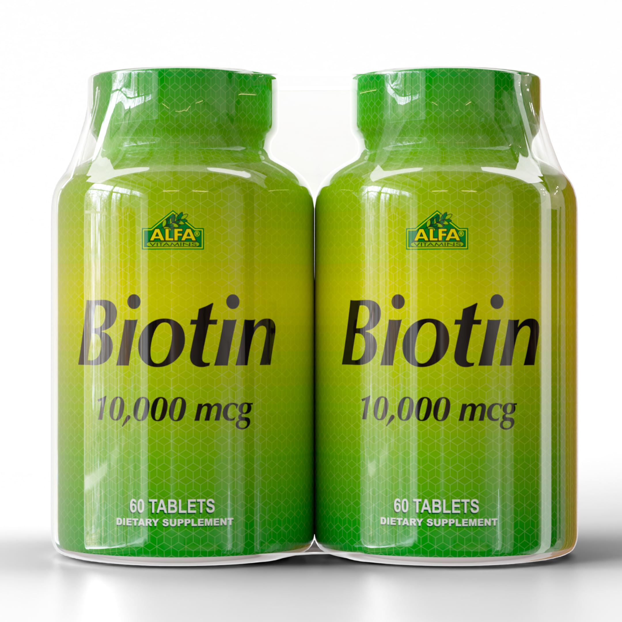 ALFA VITAMINS Biotin 10 000 mcg High Potency Vitamin B7 Supplement for Hair Skin & Nail Support 60 Tablets (2-Pack)