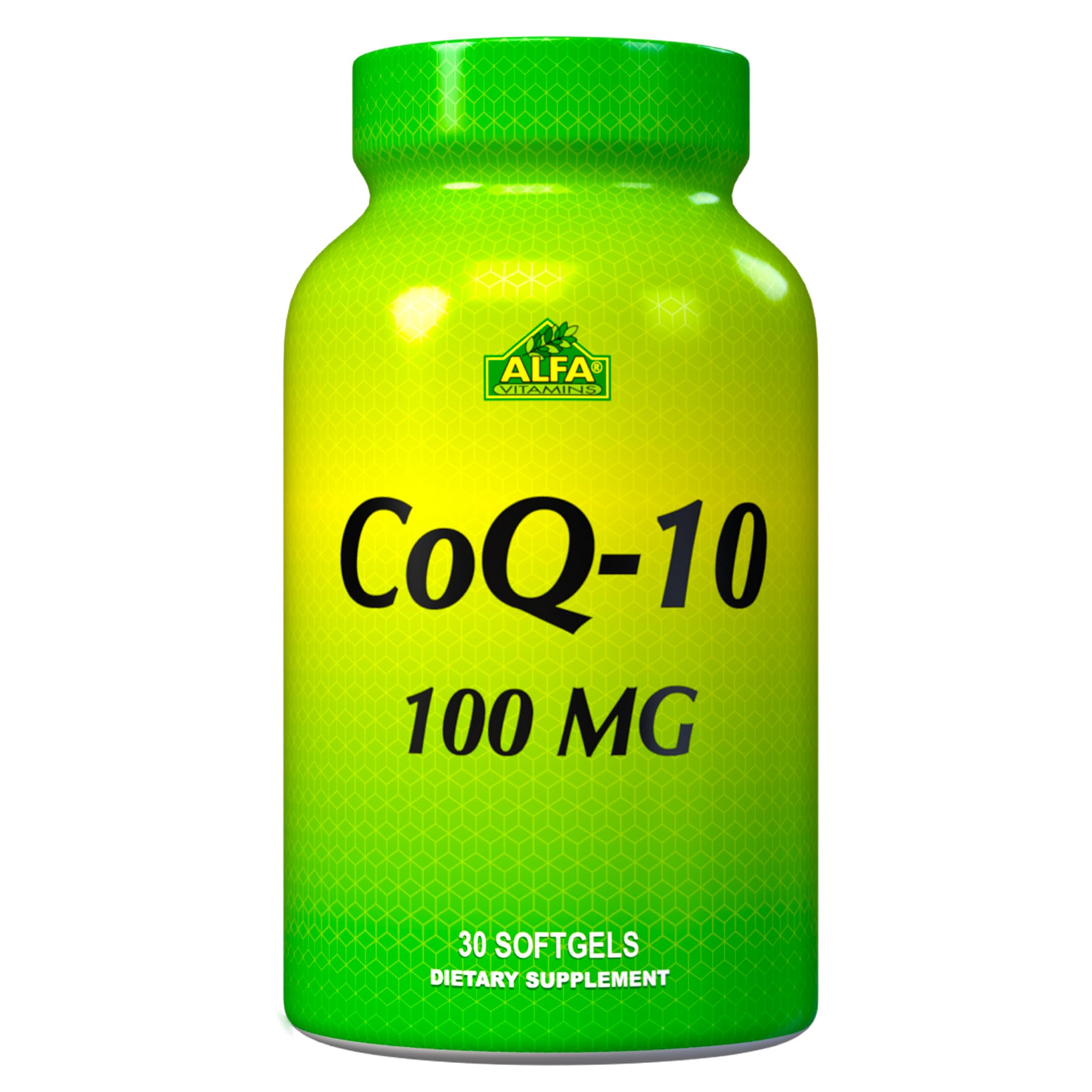 COQ-10 30 MG 100 SOFTGELS. COENZYME ANTIOXIDANT. DIETARY SUPPLEMENT CoQ10 is a natural nutrient known as coenzyme Q-10 or ubiquinone, for the characteristic to be present in all body cells. However, the greatest concentration occurs in the heart muscle due to the high amount of energy required by this organ. At cellular level, CoQ10 is needed to convert fat and sugar into energy. It helps maintain flexibility in the membrane of cells and protects against excess of free radicals. CoQ10 production in the body decreases with age. Although this coenzyme is found in some foods, like kidney, fish and whole grain germ, the amount may be deficient in the diet. Supplementation with CoQ10 helps maintain the right balance of this nutrient. WHY CHOOSE ALFA VITAMINS Alfa Vitamins Laboratories is a natural supplements company committed to creating the finest quality products, hiring the best people, and delivering the highest standards of customer service. We are members of the Natural Products Association (NPA) of the United States. Our facilities are located in Doral City, Florida. We manufacture our products with nothing but the best ingredients, period. We spend countless hours sourcing raw materials from around the world, making sure they are of the highest quality, purity, and potency. Our manufacturing facility is in compliance with the strictest GMP standards, ensuring the highest levels of product safety and stability. Operations follow the guidelines established by the Food and Drugs Administration (FDA), the Department of Agriculture and the United States Pharmacopoeia (USP). Our extensive team of highly trained and personal customer service agents is here to help you with any questions or comments you may have regarding our products. SO TO GET STARTED RIGHT NOW SIMPLY CLICK THE ADD TO CART.