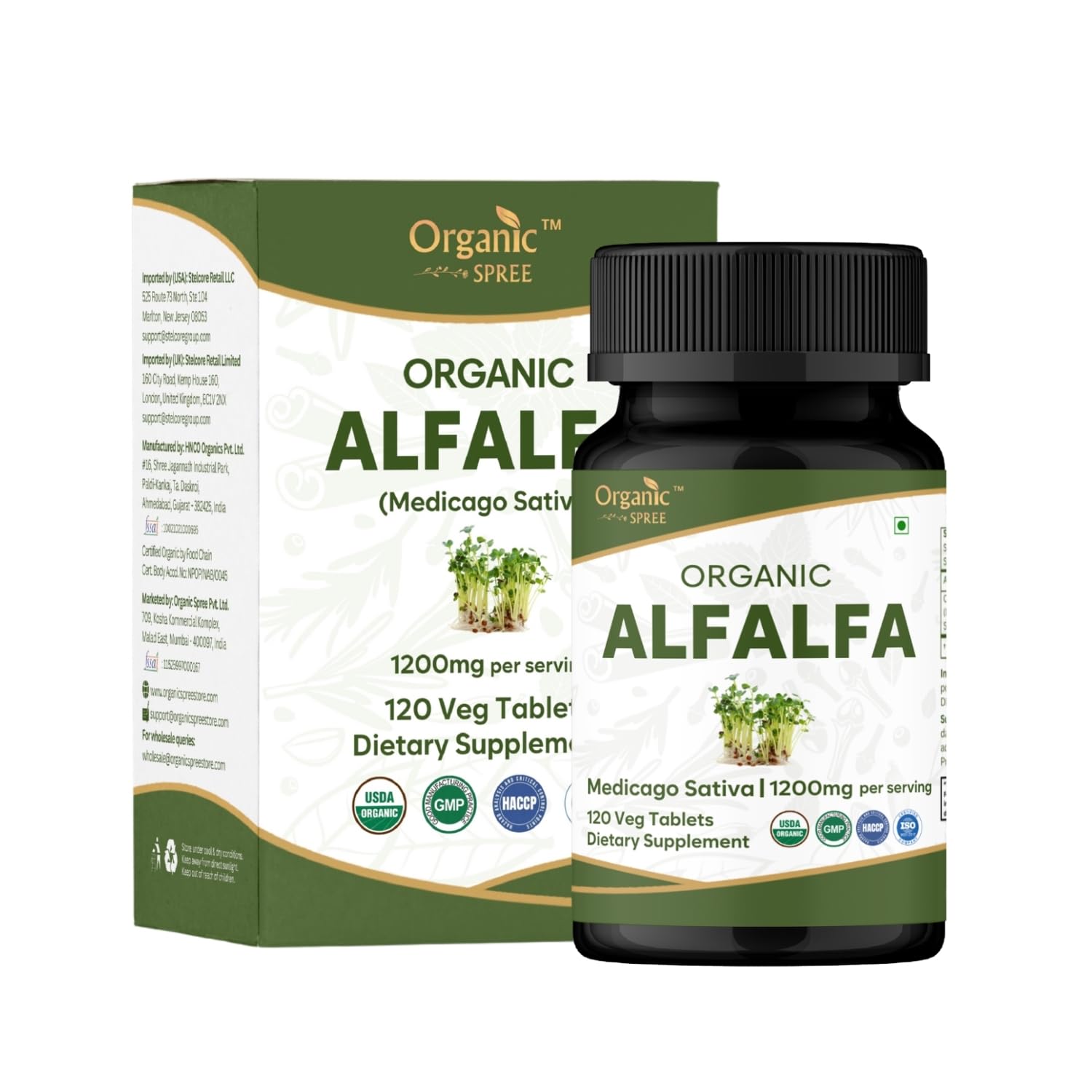 Organic Spree Alfalfa (Medicago Sativa) may support immune health and contains vitamin A, C, E, K, calcium, magnesium, iron, and potassium. . Quality and Safety : Organic Spree ALFALFA is crafted in a third-party GMP-certified facility dedicated to Good Manufacturing Practices. Our stringent testing protocols verify its identity, potency, and safety using industry-recognized methods and advanced instrumentation. . Storage : Store the tablets in a cool, dry place away from direct sunlight to maintain their potency and shelf life. . Made with Goodness : Organic Spree Alfalfa Tablets are USDA Organic Certified, Vegetarian-friendly, and free from artificial colors, flavors, and preservatives. Enjoy the benefits of Organic ALFALFA in every tablet. . Nutritious Superfood : Experience the excellence of Organic Spree's Premium Alfalfa Tablets. Our formulation harnesses the highest-quality from the freshly harvested Medicago Sativa. .