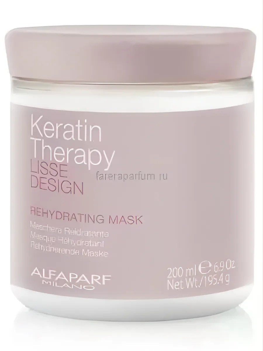 Кератиновая увлажняющая восстанавливающая маска для волос Rehydrating Mask бренда Alfaparf Milano - шаг 4 системы кератинового выпрямления Lisse design. Увлажняет волосы, предотвращая их сухость, замедляет природные процессы обезвоживания волос. Волосы выглядят блестящими, сияющими и легко расчесываются. Маска способствует восстановлению природной красоты волос, а также делает их послушными, роскошными, здоровыми, увлажненными и восполняет дефицит влаги в тканях. Великолепное средство для сухих и очень сухих волос, которые нуждаются в дополнительном уходе.