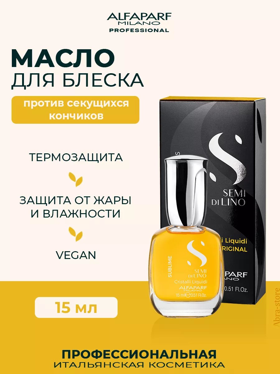 Масло против секущихся кончиков придающее блеск Semi Di Lino Sublime Cristalli Liquidi итальянской компании Alfaparf Milano подходит для всех типов волос, оно мгновенно преображает тусклые и секущиеся пряди, делает их более эластичными, прочными, мягкими и блестящими. Средство обладает комплексом питательных веществ и не утяжеляет локоны, питает волосы и защищает их во время укладки, создавая невидимый барьер, предохраняющий от перепадов температур и негативного воздействия факторов окружающей среды. Масло разглаживает волосы, предупреждает образование секущихся концов. Главными активными ингредиентами формулы являются: комплекс природных масел, минералов, витаминов и аминокислот, среди которых основными стали ненасыщенные жирные кислоты Омега-3 и Омега-6, экстракт льна и витамин Е. Способ применения: Разотрите несколько капель в ладонях, затем нанесите на влажные или сухие волосы, при желании можно использовать расчёску. Продукт не требует смывания.