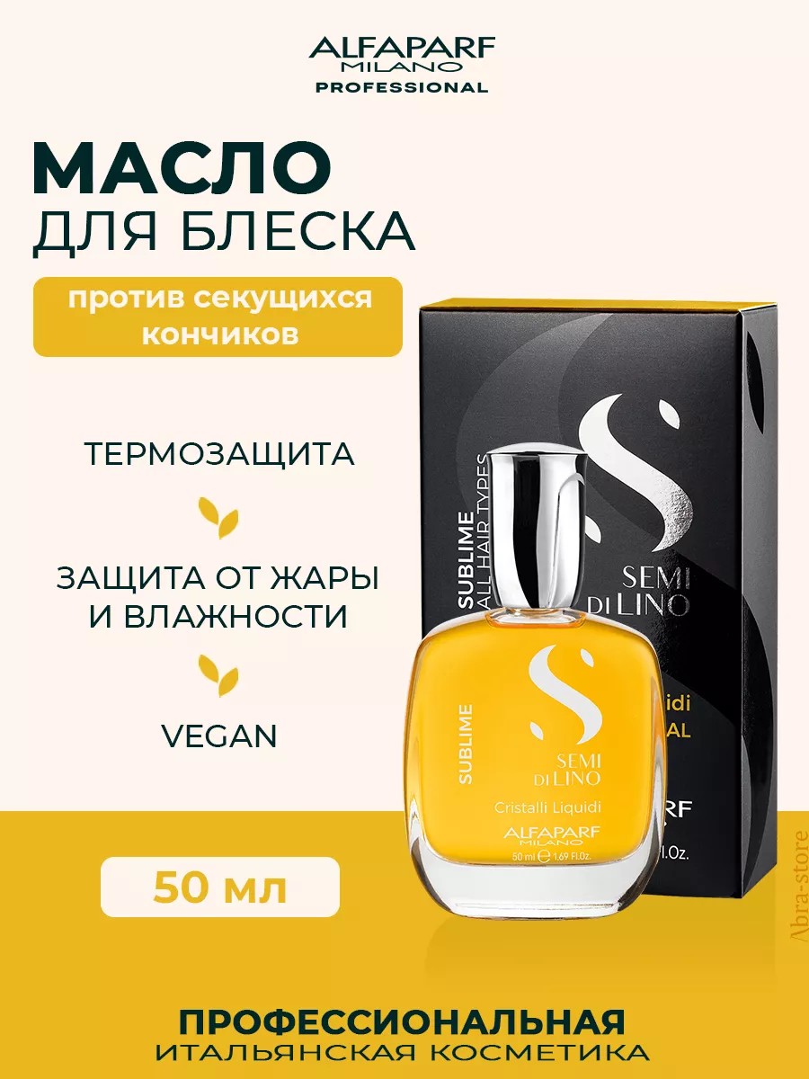 Масло против секущихся кончиков придающее блеск Semi Di Lino Sublime Cristalli Liquidi итальянской компании Alfaparf Milano подходит для всех типов волос, оно мгновенно преображает тусклые и секущиеся пряди, делает их более эластичными, прочными, мягкими и блестящими. Средство обладает комплексом питательных веществ и не утяжеляет локоны, питает волосы и защищает их во время укладки, создавая невидимый барьер, предохраняющий от перепадов температур и негативного воздействия факторов окружающей среды. Масло разглаживает волосы, предупреждает образование секущихся концов. Главными активными ингредиентами формулы являются: комплекс природных масел, минералов, витаминов и аминокислот, среди которых основными стали ненасыщенные жирные кислоты Омега-3 и Омега-6, экстракт льна и витамин Е. Способ применения: Разотрите несколько капель в ладонях, затем нанесите на влажные или сухие волосы, при желании можно использовать расчёску. Продукт не требует смывания.