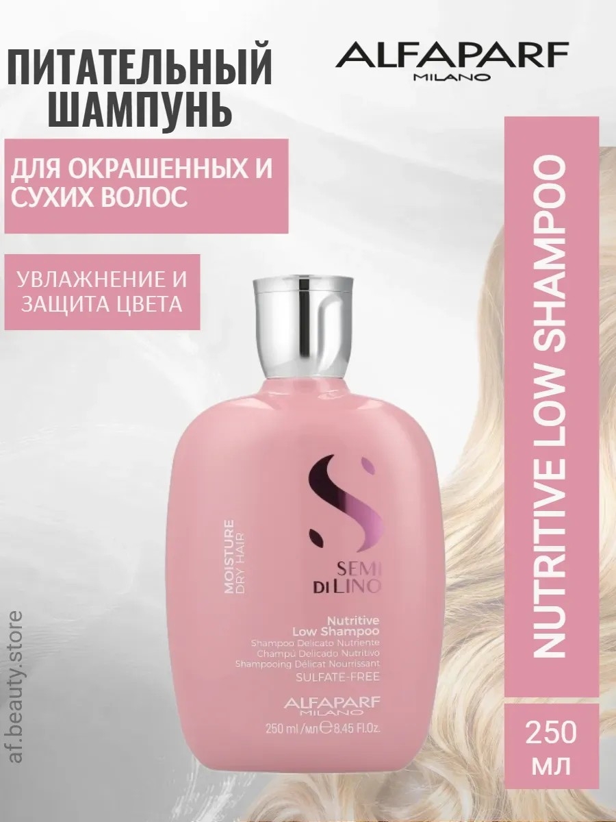 Шампунь Alfaparf Semi Di Lino Moisture Nutritive Low Shampoo 250 мл для поврежденных волос создан специально для ослабленных, сухих волос. Итальянский уход предотвращает появление секущихся кончиков, увлажняет и питает, укрепляет и восстанавливает, бережно очищает ослабленные волосы делая их невероятно мягкими, легкими и шелковистыми. Шампуни для волос профессиональные придадут Вам ухоженный внешний вид, экстракт меда сохраняет влагу внутри волоса. Комплекс сохранения цвета продлевает и усиливает сияние и интенсивность цвета. Средство облегчает процесс расчесывания волос. Содержит ненасыщенные жирные кислоты Омега-3 и Омега-6. Не содержит сульфатов, парабенов, парафиновых и минеральных масел. Подойдет как для окрашенных волос блонд, так и для натуральных брюнеток. Настоящий волшебный эликсир для укрепления волос и придания им блеска. Нанесите на влажные волосы, вспеньте массирующими движениями, смойте. Отлично подойдет для подарка маме, подруге, для дочки.