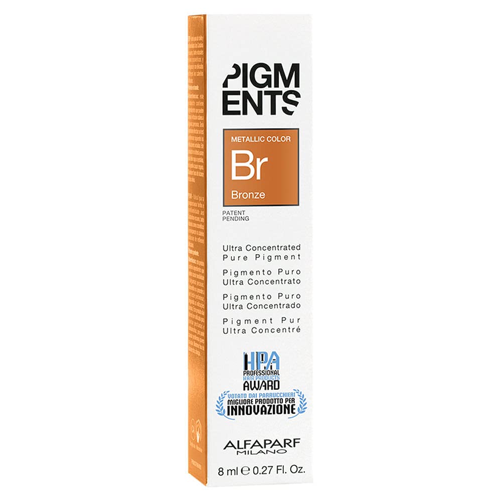 Ideal for maintaining the quality of bronze tones, adding depth to natural and cosmetic brown tones and enriching them with amber reflections. [12 ULTRA-CONCENTRATED PURE PIGMENTS] A product of the latest generation, with an extremely wide range of applications. Can be combined with all in-sale services, be it color, care, shape and styling. The pigments can be mixed with each other and the intensity of the resulting color can be adjusted by adding a high or low pigment concentration. [COMBINABLE WITH ANY SALON SERVICE] Pure pigments are suitable for natural, color-treated or bleached hair to intensify tones, add new ones, correct unwanted tones, add shine. gen, or to create a 2 in 1 service (color treatment, color shape, color styling).To enrich with amber reflections. Adds depth to natural and cosmetic brown tones. Ideal for maintaining the quality of bronze tones.Alfaparf Milano Pigments Kleur Brons, 48 ml Ideaal geeignet, um die Qualität der Bronzetöne beizubehalten, den natürlichen und kosmetischen Brauntönen Tiefe zu geben und sie mit Bernsteinreflexen anzureichern. [12 ULTRA-KONZENTRIERTE REINE PIGMENTE] Ein Produkt der neuesten Generation, mit einem extrem breiten Anwendungsspektrum. Kombinierbar mit allen In-Sale-Dienstleistungen, sei es Farbe, Pflege, Form und Styling. Die Pigmente sind untereinander mischbar und die Intensität der resultierenden Farbe kann durch Zugabe einer hohen oder niedrigen Pigmentkonzentration angepasst werden. [KOMBINIERBAR MIT JEDER DIENSTLEISTUNG IM SALON] Reine Pigmente eignen sich für natürliches, farbbehandeltes oder gebleichtes Haar, um Töne zu intensiveren, neue hinzuzufügen, unerwünschte Töne zu korrigieren, Glanz hinzufügen. gen, oder um eine 2 in 1 Dienstleistung zu schaffen (Farbe Behandlung, Farbe Form, Farbe Styling).Für eine Anreicherung mit Bernsteinreflexen. Gibt den natürlichen und kosmetischen Brauntönen Tiefe. Ideaal, um die Qualität der Bronzetöne beizubehalten.