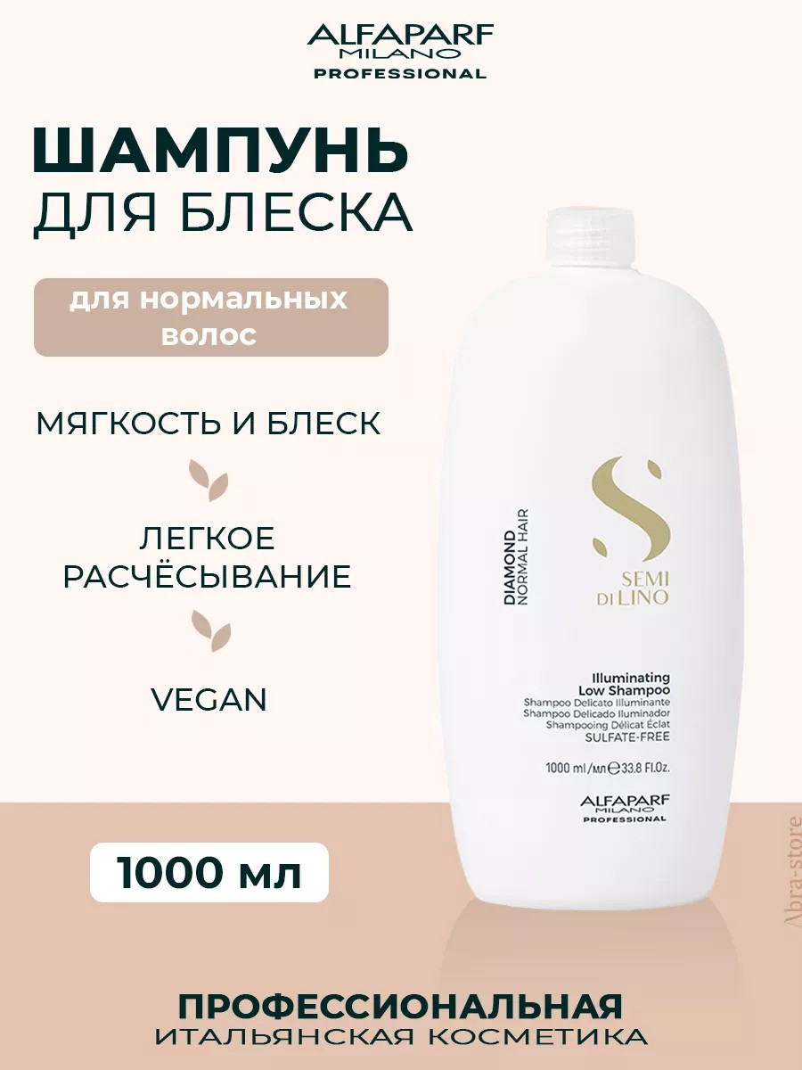 Semi Di Lino Diamond Illuminating Low Shampoo. Gently cleanses hair, leaving it soft and silky. The color-preserving complex prolongs and enhances color shine and intensity. Free of sulfates, parabens, paraffin, dyes, and mineral oils, this shampoo cares for your hair. It doesn't weigh hair down, gently cleanses, rinses easily, and leaves hair easy to comb after washing. It has a light, pleasant, and unobtrusive scent. It contains a multivitamin complex that nourishes and vitalizes hair, as well as Omega-3 and Omega-6 unsaturated fatty acids, which accelerate hair growth, improve appearance, add shine, and moisturize. Ideal for home care. Directions: Massage shampoo into damp hair until lather forms. Rinse thoroughly. Repeat if necessary.