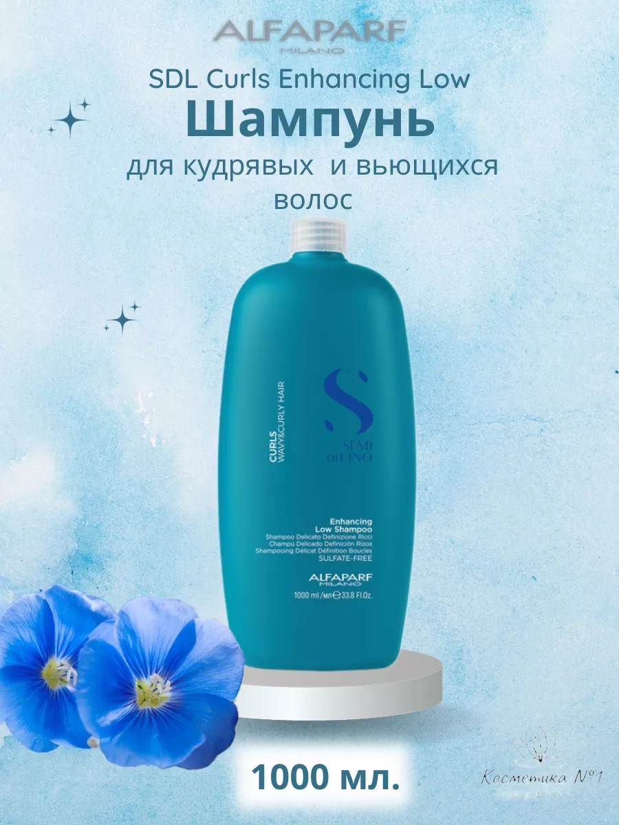 Шампунь для кудрявых и вьющихся волос SDL Curls Enhancing Low, 1000 мл. один из лучших продуктов современной косметологии, созданных для ухода за тонкими, персушенными, поврежденными кудряшками, подверженными частым испытаниям продуктами для стайлинга, феном и плойками. Инновационная формула не только бережно удаляет загрязнения с кожного и волосяного покрова головы, возвращая прическе свежий, ухоженный вид, но и насыщает локоны полезными микроэлементами. Натуральные растительные экстракты, входящие в состав косметического продукта, укрепляют волосяные фолликулы, уплотняют структуру локонов по всей длине, препятствуя ломкости, и образуют невидимый защитный слой, нивелирующий губительное влияние ультрафиолета и прочих негативных природных факторов. Шампунь Semi Di Lino Curls Enhancing Low от Alfaparf не раздражает эпидермис, не утяжеляет локоны, но придает им более четкую форму и фактуру. При регулярном применении ваши кудряшки станут сильными, объемными, упругими, послушными и наполнятся естественным природным сиянием. Состав не вызывает аллергических реакций, раздражений и шелушений, имеет комфортную и экономичную в применении консистенцию, без силиконов и спирта, приятный ненавязчивый аромат, который остается нежным шлейфом на волосах или коже на несколько часов. Идеально гладкие пряди без потери объема!