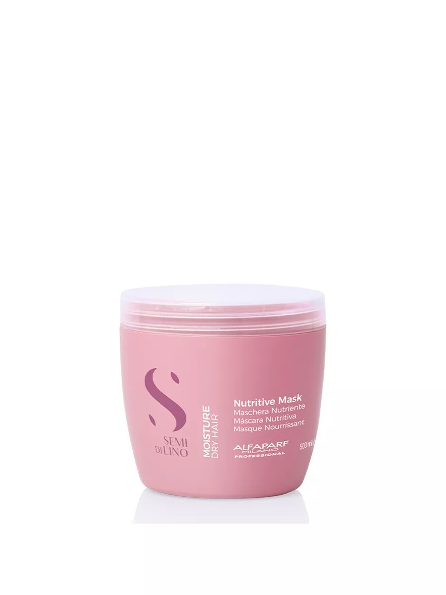 SDL Moisture Nutritive Mask for Dry Hair, 500 ml (ALFAPARF 16418). An effective treatment for dry hair. It adds softness and shine, leaving hair manageable and shiny. Ingredients: Water, Cetearyl Alcohol, Behentrimonium Chloride, Stearamidopropyl Dimethylamine, Fragrance (Parfum), Amodimethicone, Behentrimonium Methosulfate, Lactic Acid, Isopropyl Alcohol, Phenoxyethanol, Dimethicone, PEG-8 Meadowfoam, Ethylhexylglycerin, Disodium EDTA, Ethylhexyl Methoxycinnamate, Hexylene Glycol, Cetrimonium Chloride, Trideceth-10, Glycerin, Fructose, Glucose, Carnosine, Dextrin, Sucrose, Urea, Biosaccharide Gum-4, Linum Usitatissimum (Flaxseed) Seed Extract, Caesalpinia Spinosa Gum, Alanine, Aspartic Acid, Glutamic Acid, Hexyl Nicotinate, Potassium Sorbate, Sodium benzoate. Directions: After using Nutritive Low Shampoo, apply the mask to damp hair, distributing it evenly over the entire length. Leave on for 5 minutes. Rinse thoroughly with water. Gentle on the scalp and hair. Rich formula. Incredibly soft when rinsing. Hair is soft and silky. Deeply nourishing. Ultra-light, velvety effect. Oriental, fruity, floral, delightful aroma.
