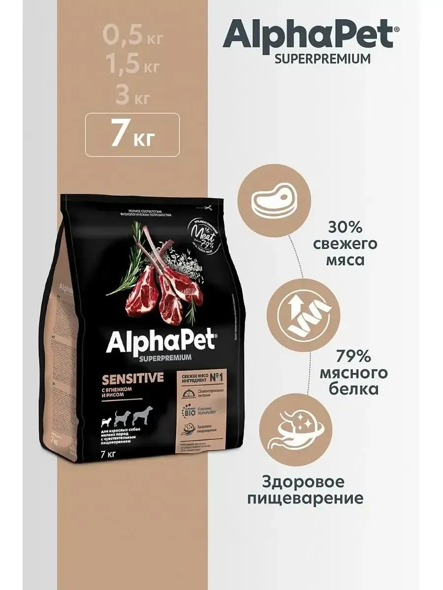 АльфаПет Сухой корм для собак мелких пород, с ягненком, 7 кг