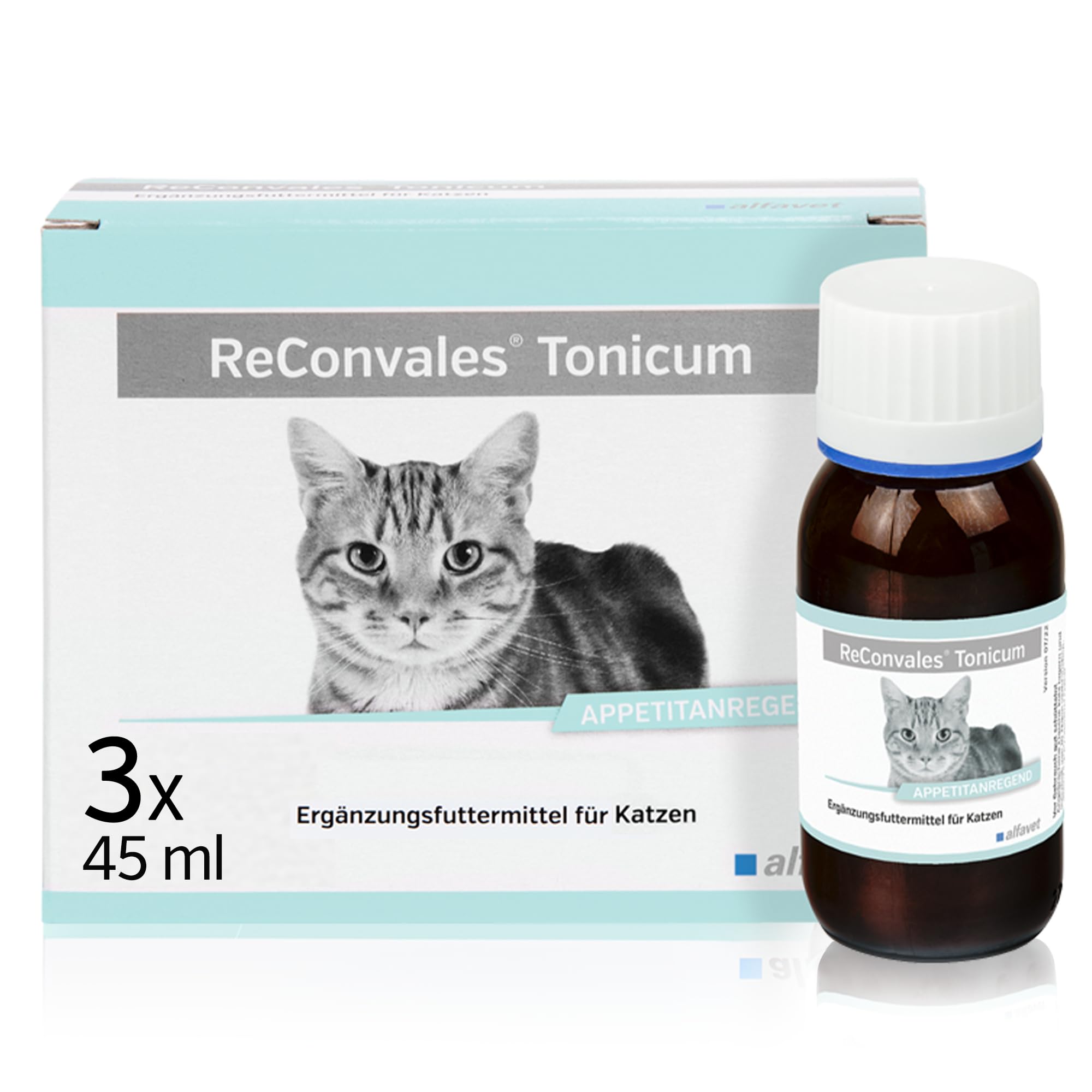 ReConvales Tonicum is very suitable for the nutritional restoration of underweight animals. It stimulates the appetite, provides fluids to the animals and provides high-quality proteins, vitamins and trace elements. In addition, vital nutrients can be absorbed thanks to the liquid form even in painful diseases of the teeth and gums. INGREDIENTS All-Natural DIRECTIONS FOR USE ReConvales Tonicum can be administered over 1 to 6 days, as a monthly course or permanently. Obtain veterinary advice before using the food or before extending its shelf life. Do not use ReConvales Tonicum alone as it does not contain enough energy. Suitable alone or as an additive to wet or dry food. When feeding, the product should be at room temperature or given slightly warmed. Composition: Thanks to the digestibility of the raw materials, the high energy content and the high concentration of essential nutrients, it is an ideal restorative food for the sick animal. Dental problems: Even in cases of painful dental and gum diseases, the sugar-free, low-fat liquid is easily absorbed. Hepatic lipidosis: In this case, food intake is a prerequisite for recovery. Thanks to its high acceptance, the cat is encouraged to return to its natural eating behavior. Restorative food: Provides valuable nutrients to the sick cat in liquid form, without unnecessarily burdening the digestive process. The tasty tonic encourages animals to eat independently. Appetite stimulation: ReConvales Tonicum helps combat poor appetite and insufficient digestive activity following operations, infectious diseases and gastrointestinal diseases. ReConvales Tonicum est très approprié pour la restauration nutritionnelle des animaux en insuffisance pondérale. Il stimule l'appétit, fournit des liquides aux animaux et fournit des protéines, des vitamines et des oligo-éléments de haute qualité.De plus, les nutriments vitaux peuvent être absorbés grâce à la forme liquide même dans les maladies douloureuses des dents et des gencives. INGRÉDIENTS All-Natural MODE D'EMPLOI ReConvales Tonicum peut être administré sur 1 à 6 jours, en cure mensuelle ou de façon permanente. Obtenir l'avis d'un vétérinaire avant d'utiliser l'aliment ou avant de prolonger sa durée de vie Ne pas utiliser ReConvales Tonicum seul car il ne contient pas assez d'énergie. Convient seul ou comme additif aux aliments humides ou secs. Lors de l'alimentation, le produit doit être à température ambiante ou donné légèrement réchauffé. Composition : grâce à la digestibilité des matières premières, à la teneur élevée en énergie et à la forte concentration en nutriments essentiels, c'est un aliment reconstituant idéal pour l'animal malade. Problèmes dentaires : même en cas de maladies douloureuses des dents et des gencives, le liquide sans sucre et à faible teneur en graisses est facilement absorbé. Lipidose hépatique : dans ce cas, la prise de nourriture est une condition préalable à la guérison. Grâce à sa grande acceptation, le chat est encouragé à revenir à son comportement alimentaire naturel. Aliment reconstituant : procure des nutriments précieux au chat malade sous forme liquide, sans surcharger inutilement le processus digestif. Le tonique savoureux incite les animaux à se nourrir de façon autonome. Stimulation de l'appétit : ReConvales Tonicum permet de combattre le manque d'appétit et une activité digestive insuffisante suite à des opérations, des maladies infectieuses et des maladies gastro-intestinales.