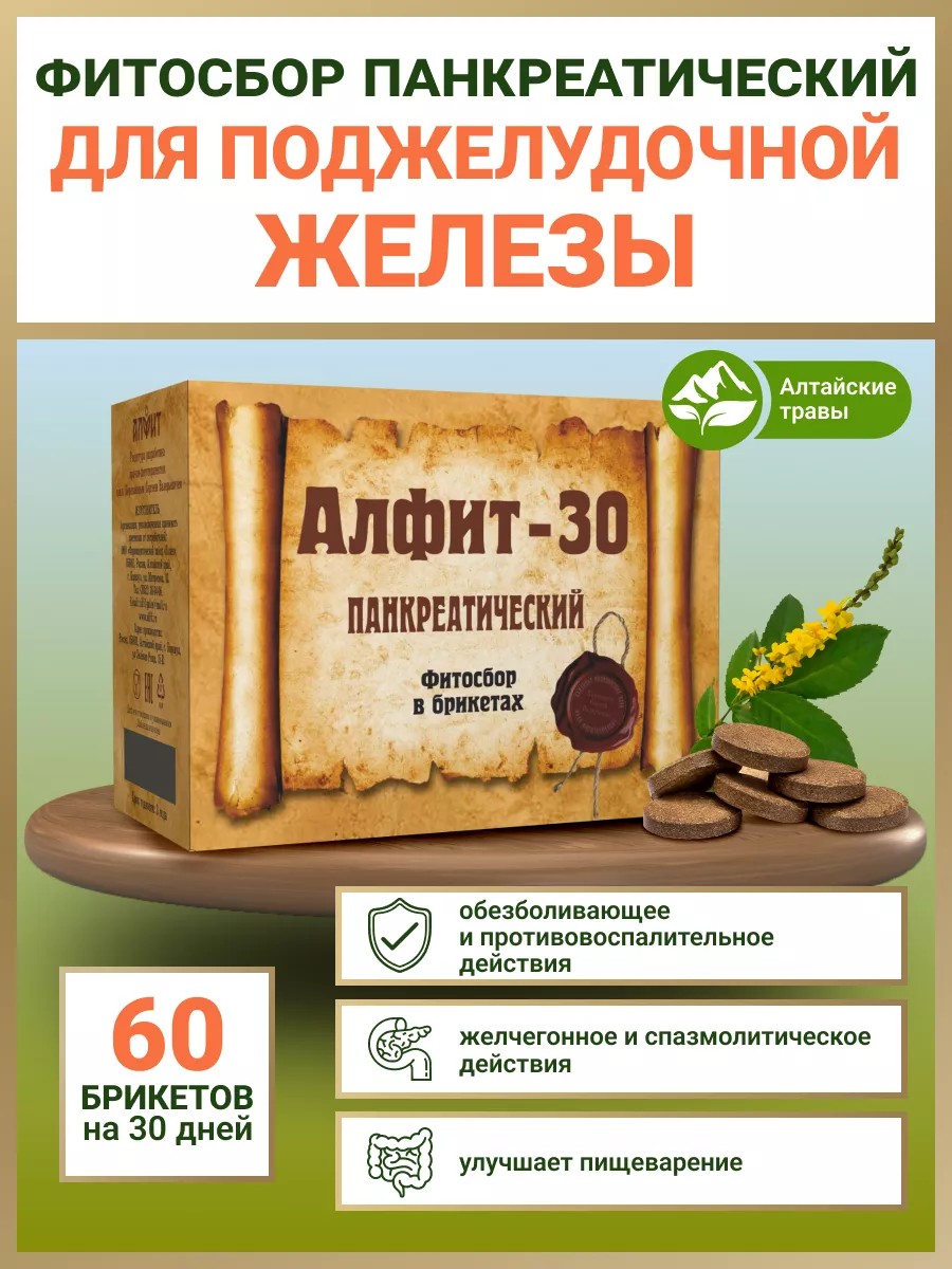 Alfit 30 herbal tea is recommended for the prevention and as part of a comprehensive treatment for pancreatitis. The components of the herbal mixture accelerate the regeneration of damaged pancreatic tissue.