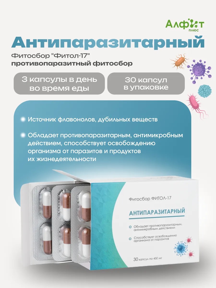 Антипаразитарный фитосбор Фитол 17 от Алфит Плюс – это эффективное и безопасное средство для борьбы с паразитами и их продуктами жизнедеятельности. Он обладает противопаразитарным и антимикробным действием, способствует очищению организма от паразитов и восстановлению нормальной работы органов пищеварительной системы.