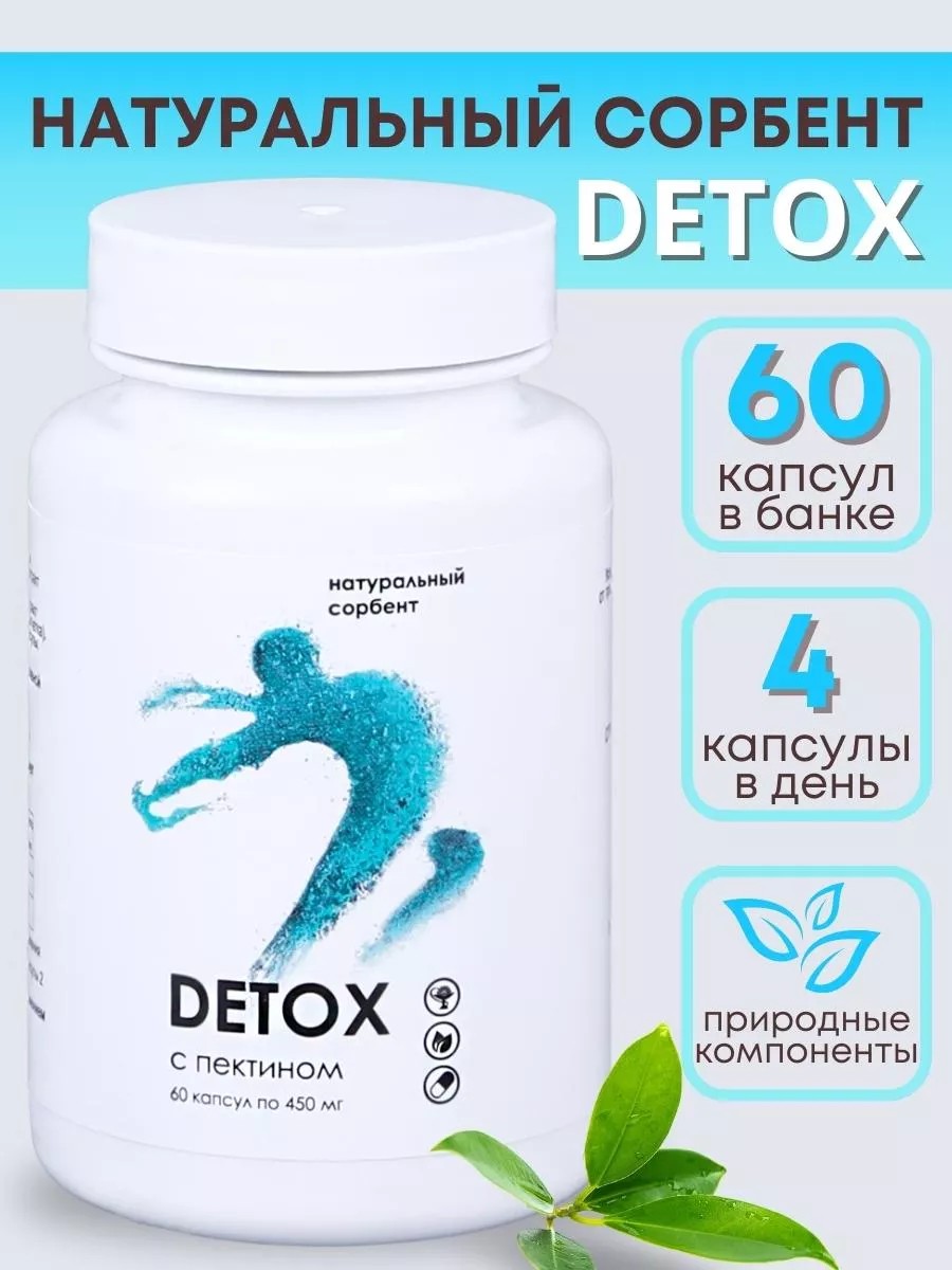 The active ingredients and components of the DETOX dietary supplement with pectin have a general strengthening, immunomodulatory, detoxifying, and antioxidant effect. They promote gentle and effective cleansing of the body, normalize intestinal motility, eliminate waste and toxins, and eliminate functional gastrointestinal disorders. This is a dietary supplement. It is not a medicine. Results from using Detox: Effective cleansing of the body, normalization of intestinal motility, elimination of functional gastrointestinal disorders, improvement of skin, hair, and nails. Directions for use: Adults take 2 capsules 2 times daily with meals. Duration of use: 15 days. Consult a doctor before use. If necessary, the dose can be repeated.