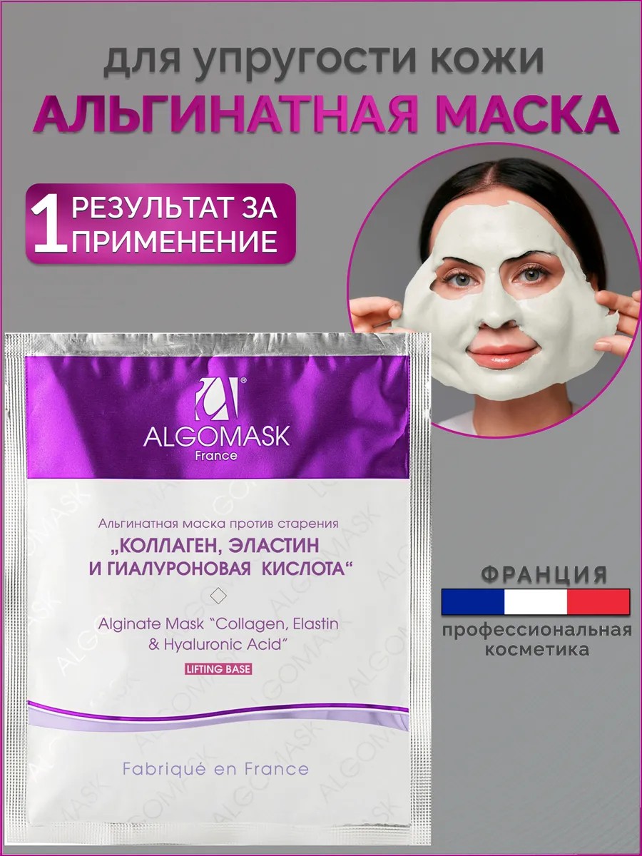 Альгинатная маска профессиональная для лица Коллаген, эластин и гиалуроновая кислота Algomask с моментальным омолаживающим действием уже после 1 го применения. Предупреждает раннее старение эпидермиса, повышают эластичность и упругость, уменьшает глубину морщин, восстанавливает повреждения кожи. Гиалуроновая кислота обеспечивает длительное увлажнение. Эффективна в борьбе с несовершенствами кожи.