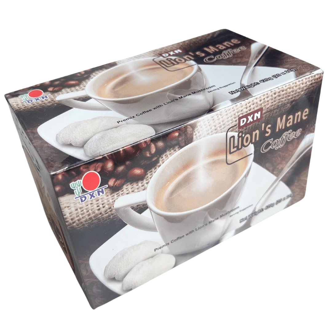 DXN CAFÉ enriched with Lion's Mane, offers a unique coffee tasting experience. Each box contains 20 sachets of 21 grams each, prepared to provide you with not only premium coffee but also the cognitive and well-being benefits associated with Lion's Mane extract. ? Unique Coffee: Enjoy a coffee enriched with Lion's Mane extract, known for its beneficial properties on brain health and mental clarity. Cognitive Enhancement: Adding Lion's Mane to your daily coffee can help boost concentration, memory and creativity. 100 Natural: Formulated with all-natural ingredients, this coffee offers a healthy way to start your day or enjoy an invigorating coffee break. Convenient: Each 21 gram sachet is designed for quick and easy preparation, perfect for busy mornings or work breaks. Superior Quality: DXN is committed to providing the highest quality products, and this Lion's Mane coffee is no exception. Embrace the day with DXN CAFÉ made with Lion's Mane, and experience a boost of mental and physical well-being with every cup. INGREDIENTS Coffee, lion's maneDXN Premium Quality: Trust DXN's commitment to exceptional quality, delivering premium Lion's Mane coffee. Convenient Size: With 20 sachets of 21 grams each, this coffee is ideal for quick preparation, whether at home or in the office. 100 Natural: Enjoy an all-natural composition, with no artificial additives, for a healthy start to the day or an invigorating coffee break. Cognitive Boost: Each cup stimulates concentration, memory and creativity thanks to the beneficial properties of Lion's Mane. ? Lion's Mane Enriched Coffee: Discover DXN CAFÉ, a unique coffee experience enhanced with Lion's Mane, for a rich taste and notable cognitive benefits. DXN CAFÉ enrichi avec Lion's Mane (crinière de lion), offre une expérience unique de dégustation de café. Chaque boîte contient 20 sachets de 21 grammes chacun, préparés pour vous fournir non seulement un café de qualité supérieure mais aussi les bienfaits cognitifs et de bien-être associés à l'extrait de Lion's Mane. ? Café Unique : Profitez d'un café enrichi avec l'extrait de Lion's Mane, reconnu pour ses propriétés bénéfiques sur la santé du cerveau et la clarté mentale. Amélioration Cognitive : L'ajout de Lion's Mane dans votre café quotidien peut aider à stimuler la concentration, la mémoire et la créativité. 100 Naturel : Formulé avec des ingrédients entièrement naturels, ce café offre une manière saine de démarrer votre journée ou de profiter d'une pause café revigorante. Pratique : Chaque sachet de 21 grammes est conçu pour une préparation rapide et facile, parfait pour les matins pressés ou les pauses au travail. Qualité Supérieure : DXN s'engage à fournir des produits de la plus haute qualité, et ce café à base de Lion's Mane ne fait pas exception. Embrassez la journée avec DXN CAFÉ à base de Lion's Mane, et expérimentez un boost de bien-être mental et physique avec chaque tasse. INGRÉDIENTS Café, lion's maneQualité Supérieure DXN : Faites confiance à l'engagement de DXN pour une qualité exceptionnelle, offrant un café à base de Lion's Mane de premier choix. Format Pratique : Avec 20 sachets de 21 grammes chacun, ce café est idéal pour une préparation rapide, que ce soit chez vous ou au bureau. 100 Naturel : Profitez d'une composition entièrement naturelle, sans additifs artificiels, pour un début de journée sain ou une pause café vivifiante. Boost Cognitif : Chaque tasse stimule la concentration, la mémoire et la créativité grâce aux propriétés bénéfiques de Lion's Mane. ? Café Enrichi au Lion's Mane : Découvrez le DXN CAFÉ, une expérience café unique agrémentée de Lion's Mane, pour un goût riche et des avantages cognitifs notables.