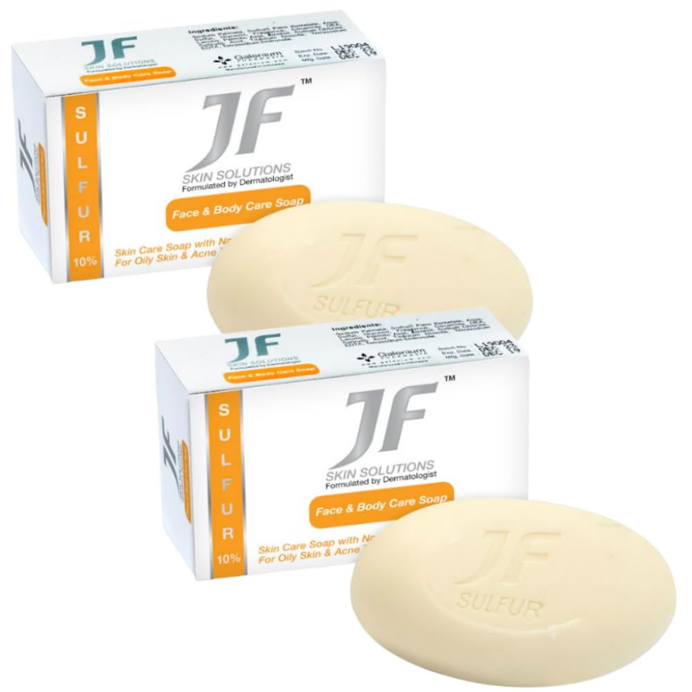 JF Sulfur soap is a cleansing treatment specially designed for oily and acne-prone skin. Its formula, based on natural ingredients, helps to deeply cleanse pores and reduce excess sebum without irritating the skin. Thanks to its purifying action, this soap helps maintain clean and clear skin while minimizing the appearance of blemishes. Suitable for daily use on the face and body. Directions: Lather the soap in your hands with a little water, apply to damp skin, massaging gently, then rinse thoroughly. Avoid contact with eyes. For external use only. Contents: 2 soaps of 100g each Skin type: Oily, combination, or acne-prone Origin: Philippines Malaysia Brand: JF Skin Solutions Suitable for daily use. Dermatologically tested. SAFETY WARNING For external use only. Avoid contact with eyes✓ Value pack of 2 x 100g soaps – Dermatologically manufactured by JF Skin Solutions, a renowned Asian brand for oily skin care. Daily use – Suitable for face, back, and body. Leaves a lasting feeling of freshness and cleanliness. Deep cleansing – Removes impurities, dust, and accumulated oil while respecting the skin's natural barrier. Ideal for oily and acne-prone skin – Helps purify the skin, unclog pores, and reduce excess sebum (acne). JF Sulfur Purifying Soap – Face and body cleanser formulated with natural active ingredients for visibly clearer skin.Lot de 2 Savons JF Sulfur – Soin Visage Corps – Idéal pour Peaux Grasses et à Tendance Acnéique – Nettoyant Purifiant 100 gDESCRIPTION DU PRODUIT DESCRIPTION DU PRODUIT Le savon JF Sulfur est un soin nettoyant spécialement conçu pour les peaux grasses et à tendance acnéique. Sa formule à base d'ingrédients naturels aide à nettoyer les pores en profondeur et à réduire l'excès de sébum, sans agresser la peau. Grâce à son action purifiante, ce savon contribue à maintenir la peau propre et nette, tout en limitant l'apparition d'imperfections. Convient pour une utilisation quotidienne sur le visage et le corps. Utilisation : Faire mousser le savon entre les mains avec un peu d'eau, appliquer sur la peau humide en massant doucement, puis rincer soigneusement. Évitez le contact avec les yeux. Usage externe uniquement. Contenu : 2 savons de 100 g chacun Type de peau : grasse, mixte ou sujette à l'acné Origine : Philippines Malaisie Marque : JF Skin Solutions Convient pour un usage quotidien. Testé dermatologiquement. AVERTISSEMENT DE SÉCURITÉ Usage externe uniquement. Évitez tout contact avec les yeux✓ Lot économique de 2 savons 100 g – Fabriqué sous contrôle dermatologique par JF Skin Solutions, marque reconnue en Asie pour le soin des peaux grasses. Utilisation quotidienne – Convient pour le visage, le dos et le corps. Laisse une sensation de fraîcheur et de propreté durable. Nettoyage en profondeur – Élimine les impuretés, la poussière et l'huile accumulée tout en respectant la barrière naturelle de la peau. Idéal pour peaux grasses et à tendance acnéique – Aide à purifier la peau, désobstruer les pores et réduire l'excès de sébum (acnée). Savon purifiant JF Sulfur – Nettoyant visage et corps formulé avec des ingrédients actifs naturels pour une peau visiblement plus nette.