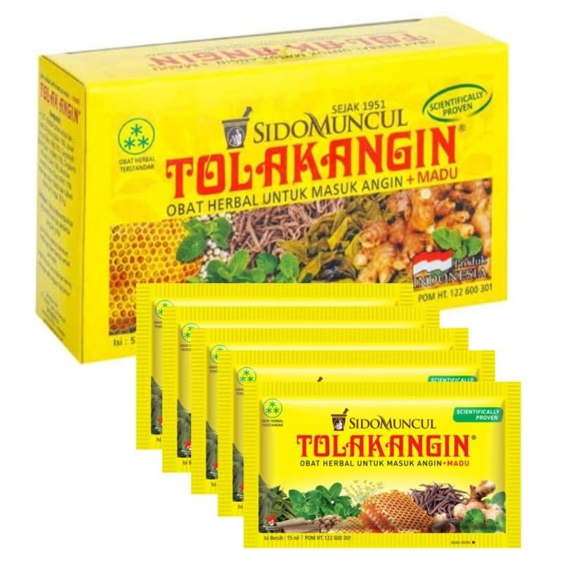 Tolak Angin - Herbal and Honey Drink - 5 Liquid Sachets Made from botanical ingredients such as ginger, fennel, mint, ule wood, cloves, and natural honey, Tolak Angin is a traditional remedy inspired by Indonesian herbalism. Suitable for seasonal changes, long journeys, or temporary fatigue. Contains honey for a smooth and pleasant taste. 5 x 15ml liquid sachets - easy to drink or dilute. Manufactured in a GMP, ISO, and HACCP certified facility. Herbs known for their digestive and soothing properties. Directions for use: General well-being: 2 sachets per day for 7 days or more. Fatigue or digestive issues: up to 3-4 sachets per day. Before traveling: 1 sachet. Shake before use. Can be consumed directly or in a hot beverage. INGREDIENTS Herbal extract with honeyConvenient before long journeys, during periods of disturbed sleep, or during seasonal changes. Manufactured according to GMP, ISO, and HACCP standards – certified and tested product. Convenient format: 5 liquid sachets of 15 ml – to be consumed directly or with hot water. Contains ginger, fennel, cloves, mint, and uleswood – selected botanical ingredients. A natural blend of herbs and honey – ideal for times of fatigue or indigestion.Tolak Angin - 5 Sachets 15ml - Herbes Miel - Bien-être Digestif Naturel - Format Liquide Prêt à BoireDESCRIPTION DU PRODUIT DESCRIPTION DU PRODUIT Tolak Angin - Boisson Herbes et Miel - 5 Sachets Liquides Fabriqué à partir d'ingrédients botaniques tels que le gingembre, le fenouil, la menthe, le bois d'Ules, les clous de girofle et le miel naturel, Tolak Angin est une solution traditionnelle inspirée de l'herboristerie indonésienne. Convient pour les changements saisonniers, les longs voyages ou la fatigue temporaire. Contient du miel pour un goût doux et agréable 5 sachets liquides de 15 ml - faciles à consommer ou à diluer Fabriqué dans une usine certifiée GMP, ISO, HACCP Plantes connues pour leurs propriétés digestives et apaisantes. Conseils d'utilisation : Bien-être général : 2 sachets par jour pendant 7 jours ou plus Fatigue ou troubles digestifs : jusqu'à 3-4 sachets jour. Avant le voyage : 1 sachet. Agiter avant utilisation. Peut être consommé directement ou dans une boisson chaude. INGRÉDIENTS Extrait d'herbes avec du mielPratique avant les longs trajets, le sommeil perturbé ou les changements de saison. Fabriqué selon les normes GMP, ISO et HACCP - Produit certifié et testé. Format pratique : 5 sachets liquides de 15 ml - A consommer directement ou avec de l'eau chaude. Contient du gingembre, du fenouil, du clou de girofle, de la menthe et du bois d'Uleswood - ingrédients botaniques sélectionnés. Mélange naturel de plantes et de miel - Idéal pour les moments de fatigue ou de digestion difficile.