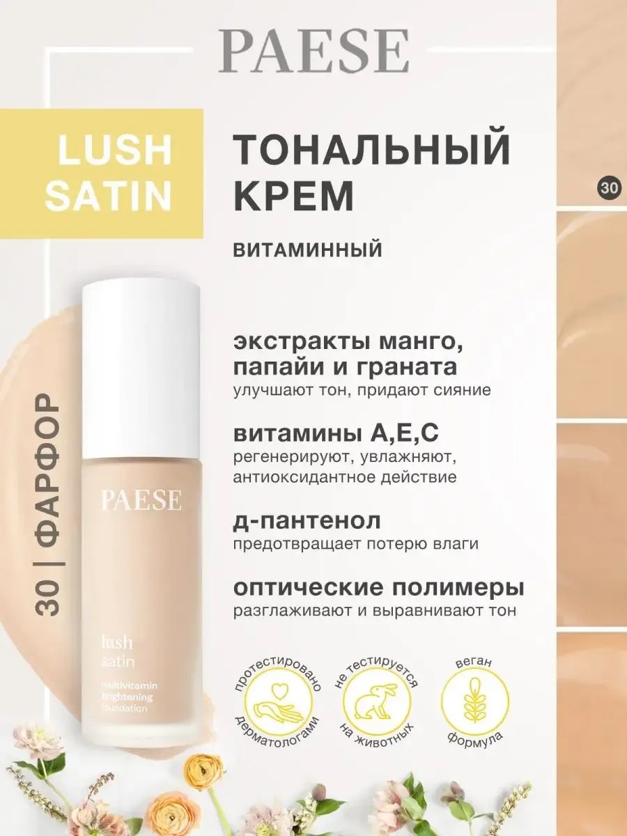 Выравнивающий тональный крем с эффектом сияния Lush Satin 30