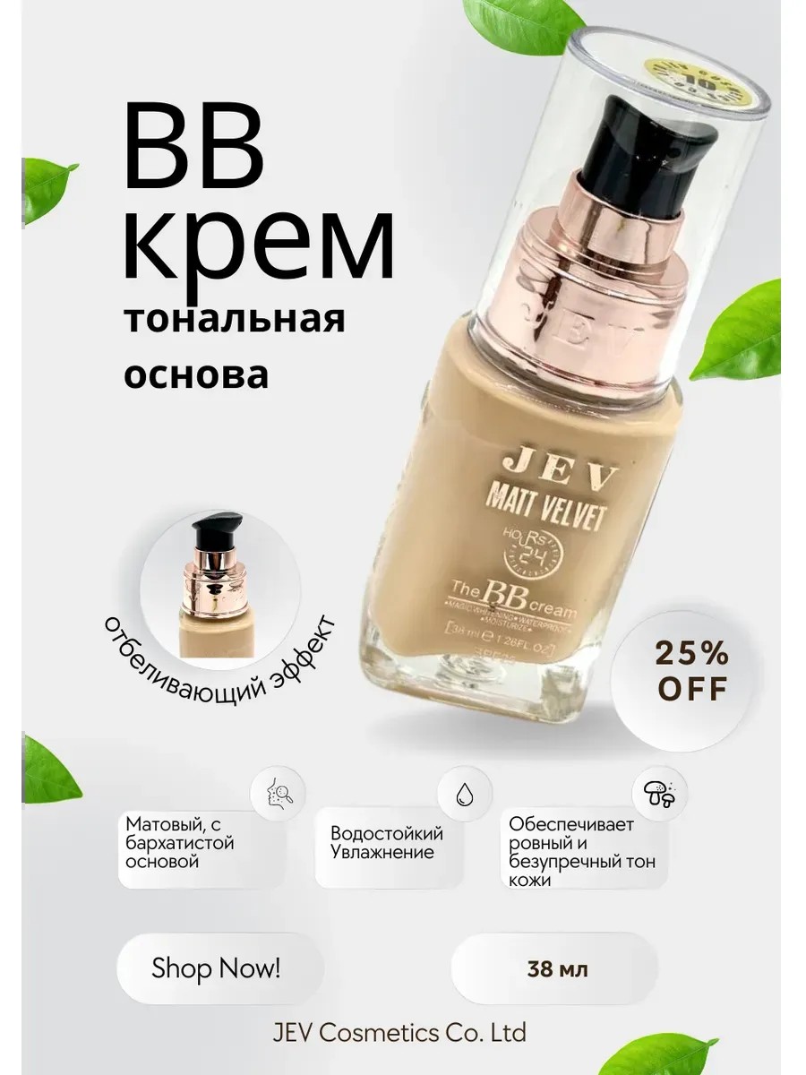 Тональная основа/ВВ-крем JEV Cosmetics Co. Ltd. Матовый, с бархатистой и мягкой текстурой