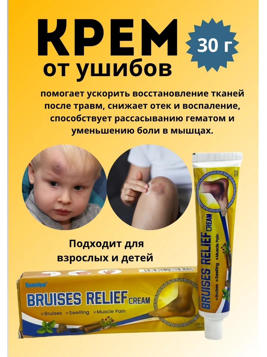 По запросу: крем от ушибов, мазь от синяков, bruise cream, крем от гематом, обезболивающий крем, противоотечный крем, средство от мышечной боли, крем от отеков, Sumifun мазь, спортивная мазь, натуральный крем от боли.