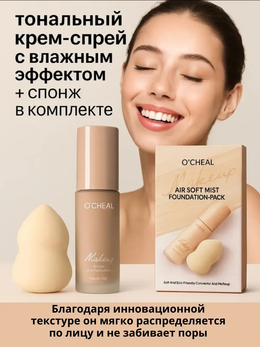 По запросу: тональный крем спрей, тональный крем с эффектом увлажнения, легкое покрытие, основа под макияж, крем для лица, консилер, спонж для макияжа, косметический набор, O’CHEAL, foundation pack, тональная основа, мягкое покрытие, макияж без эффекта маски, уход за кожей, косметика для лица, мейкап, air mist foundation, beauty blender