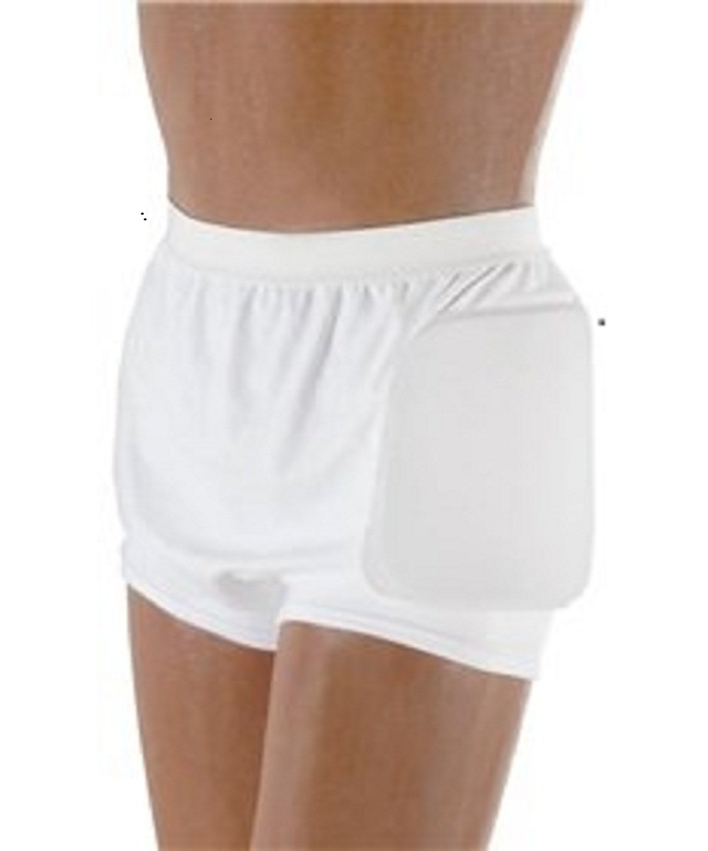 AliMed HipShield Hip Protector helps guard against injuries related to lateral falls. Ideal for patients at risk for hip fracture. Closed-cell foam protection pads are sewn into the garment. Comfortably positioned over each hip, the protective pads help to absorb the impact on the hip produced by a fall. Perforations in the foam allow the skin to breathe and help guard against skin breakdown. Cotton-spandex blend is cool and comfortable. HipShield is worn under clothing and will not shift or bunch. Unisex briefs are available in four sizes. Fully launderable. Do not use bleach. Sizing: Measure around waist for best fit X-Large fits 38" - 42"
