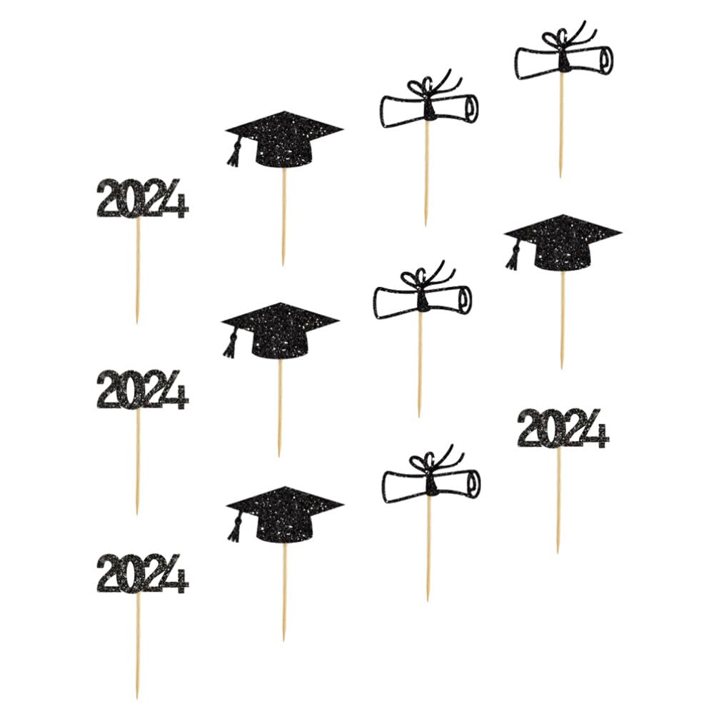 Alipis 2024 Graduation Cupcake Decorations: 12-Pack Cupcake Picks Appetizer Picks Cake Topper Graduation Themed Cake Picks