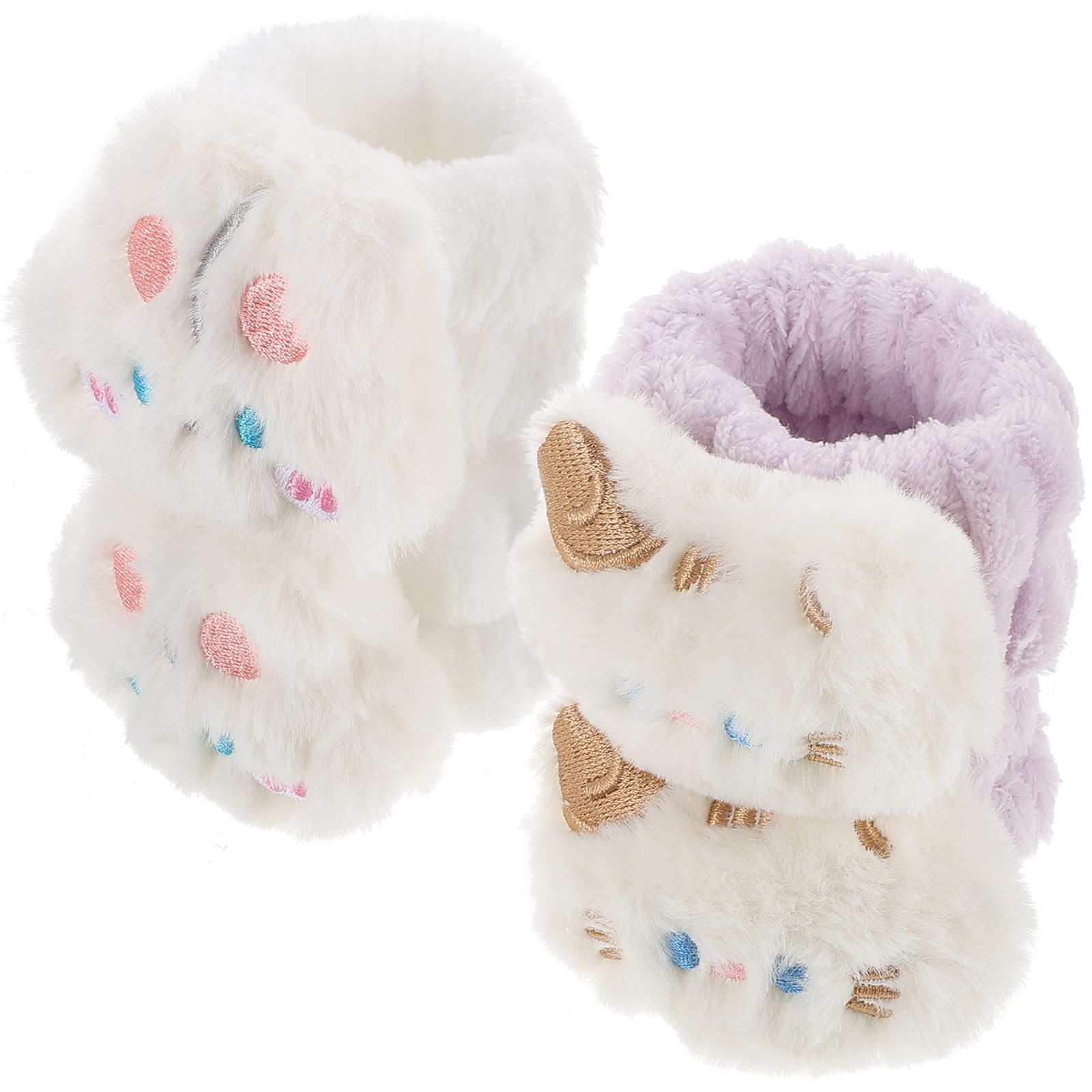 Alipis Lot de 4 Bracelets de Lavage du Visage en Imitation Fourrure Anti-humidit et Imperm ables Jusqu au Poignet Blanc Motifs Chat et Lapin Confortables et Absorbants pour Soins
