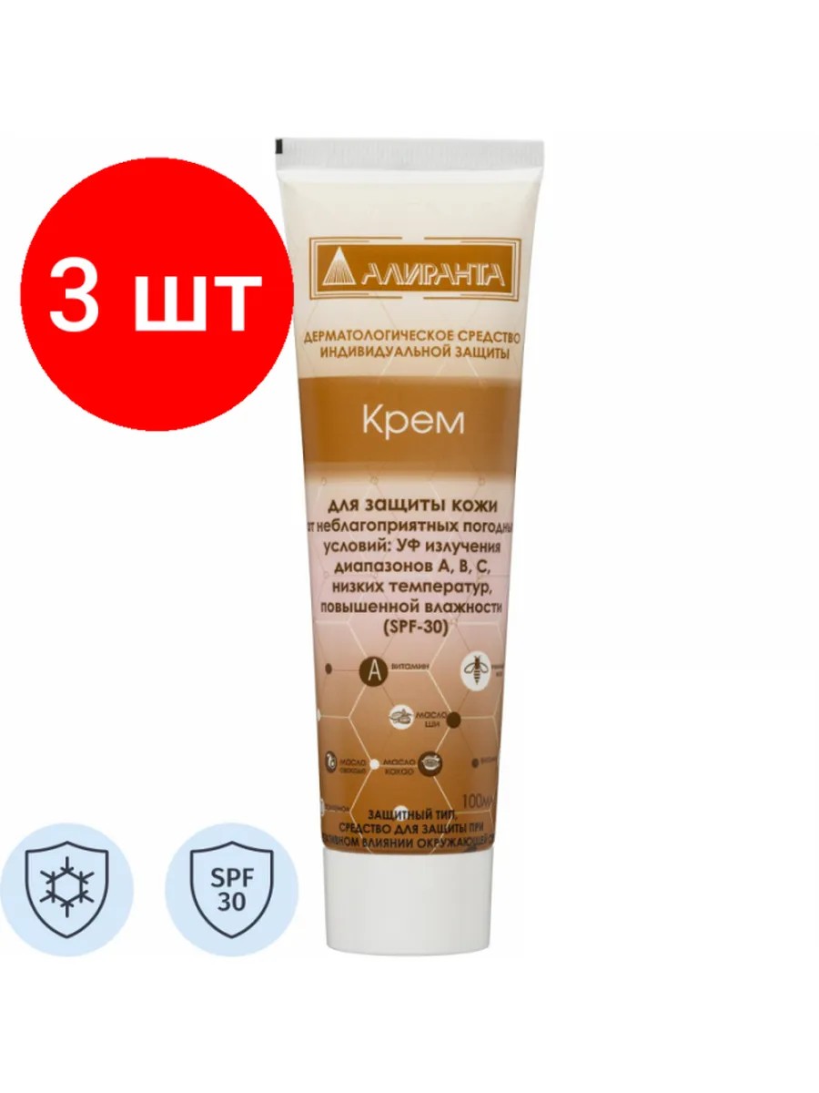 Внимание! Товар продается КОМПЛЕКТОМ: [Крем АЛИРАНТА от неблаг условий: УФ излучения,низких температур 100мл 10031] X 3 ШТ.
