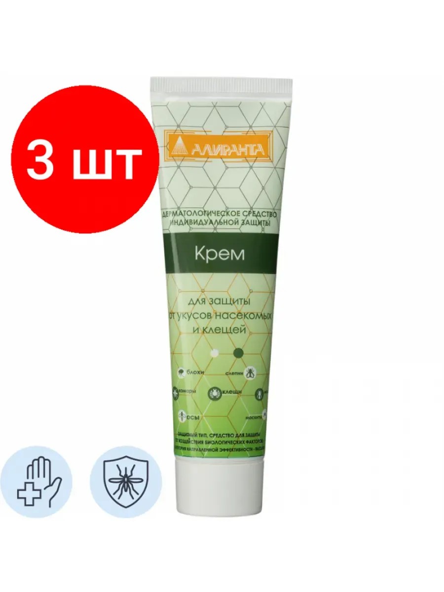 Внимание! Товар продается КОМПЛЕКТОМ:[Крем защитный Алиранта от укусов насекомых(арт.10035), флакон 100 мл] X 3 ШТ.