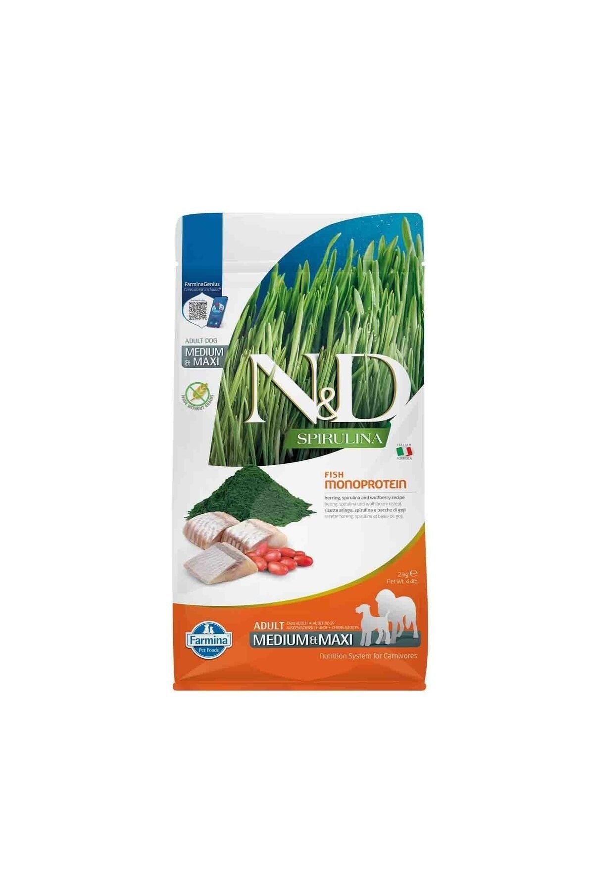 Alisopping ND Spirulina Fortified Grain-Free Herring Fish Medium and Large Breed Adult Dog Food 2kg