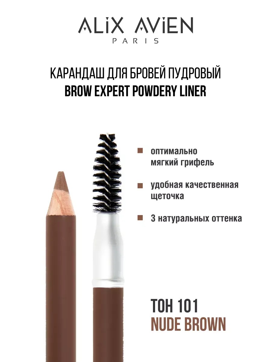 Карандаш для бровей ALIX AVIEN коричневый 101 - это незаменимый инструмент для создания естественного и выразительного макияжа бровей.