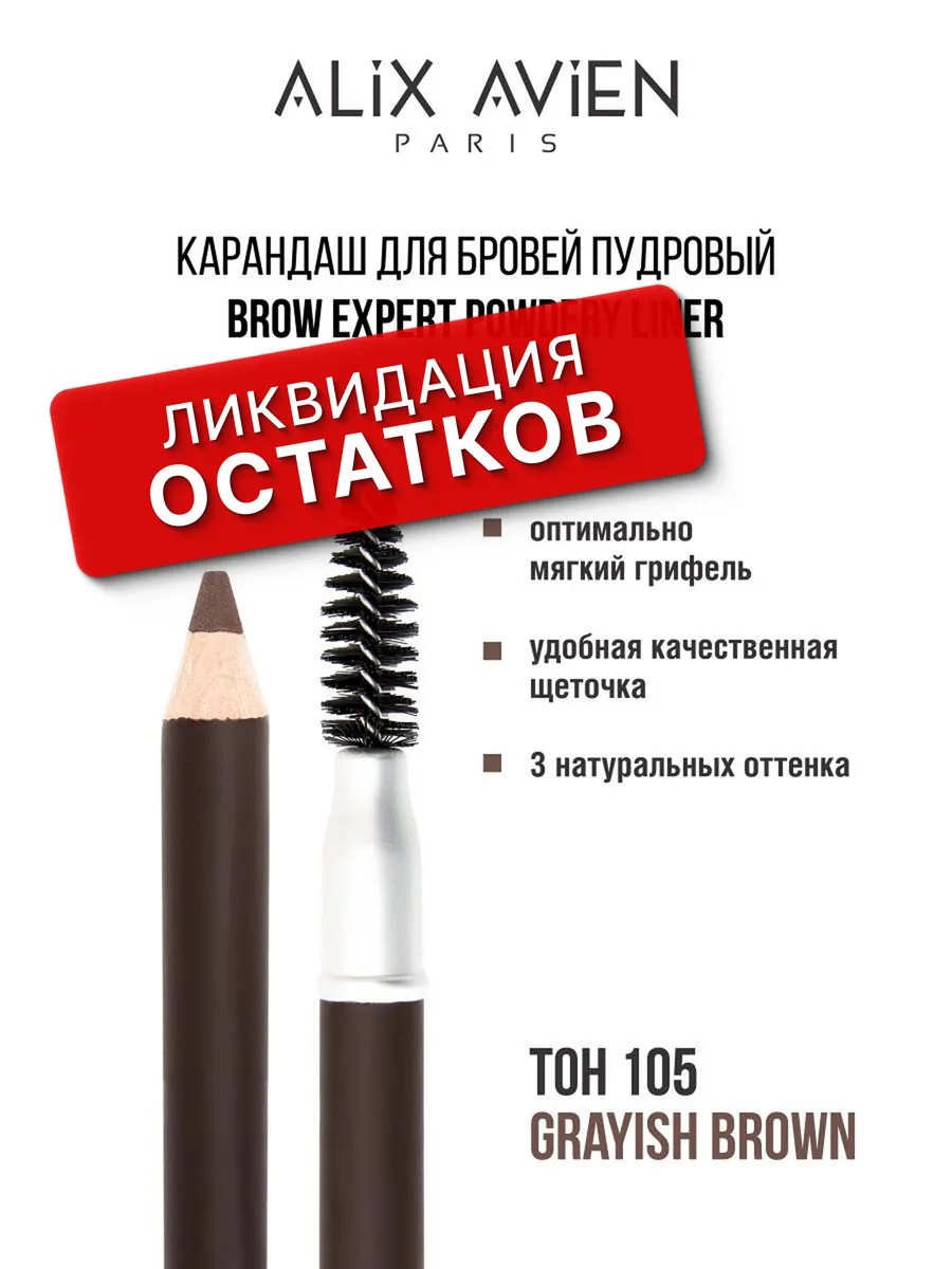 Карандаш для бровей темно-коричневый тон 105 от ALIX AVIEN - двухсторонний с щеткой, это высококачественное средство для макияжа бровей от известного бренда Alix Avien. Продукт отличается пудровой и сверхмягкой текстурой, которая обеспечивает безупречное нанесение и равномерную тушевку.
