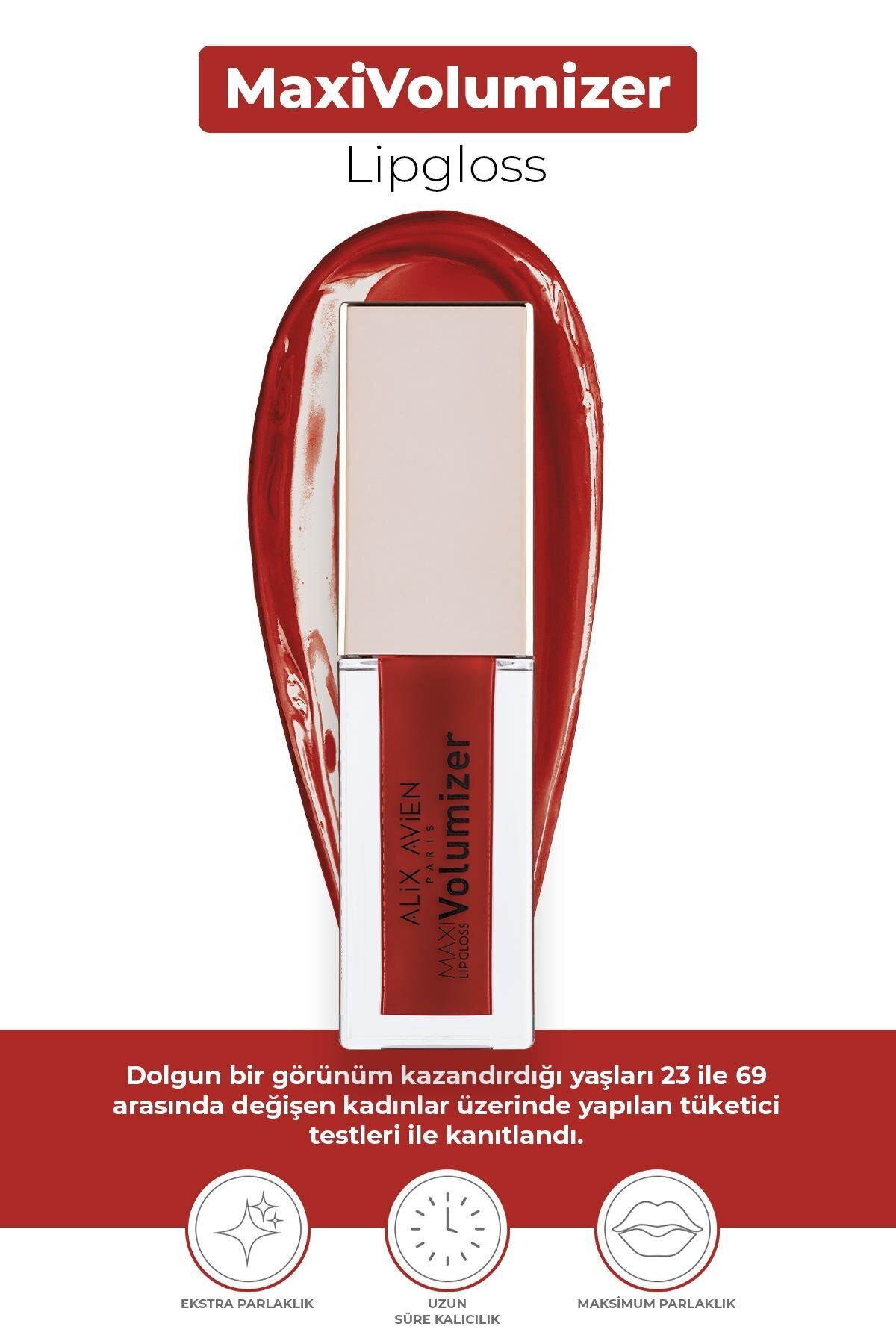 MaxiVolumizer Lipgloss'un dudaklara daha dolgun bir görünüm kazandirdigi yaslari 23 ile 69 arasinda degisen kadinlar üzerinde yapilan tüketici testleri ile kanitlandi.