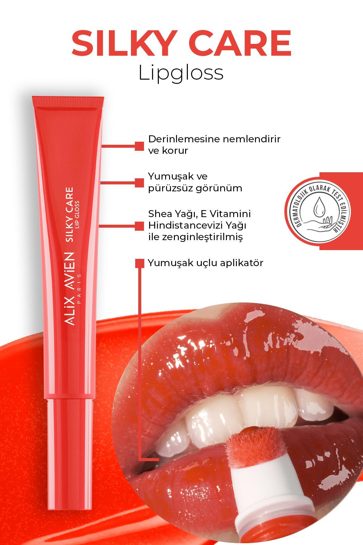 Alix Avien Silky Care Lipgloss 308 - Flame Red - Soft Smooth Appearance - Protective and Moisturizing Effect
