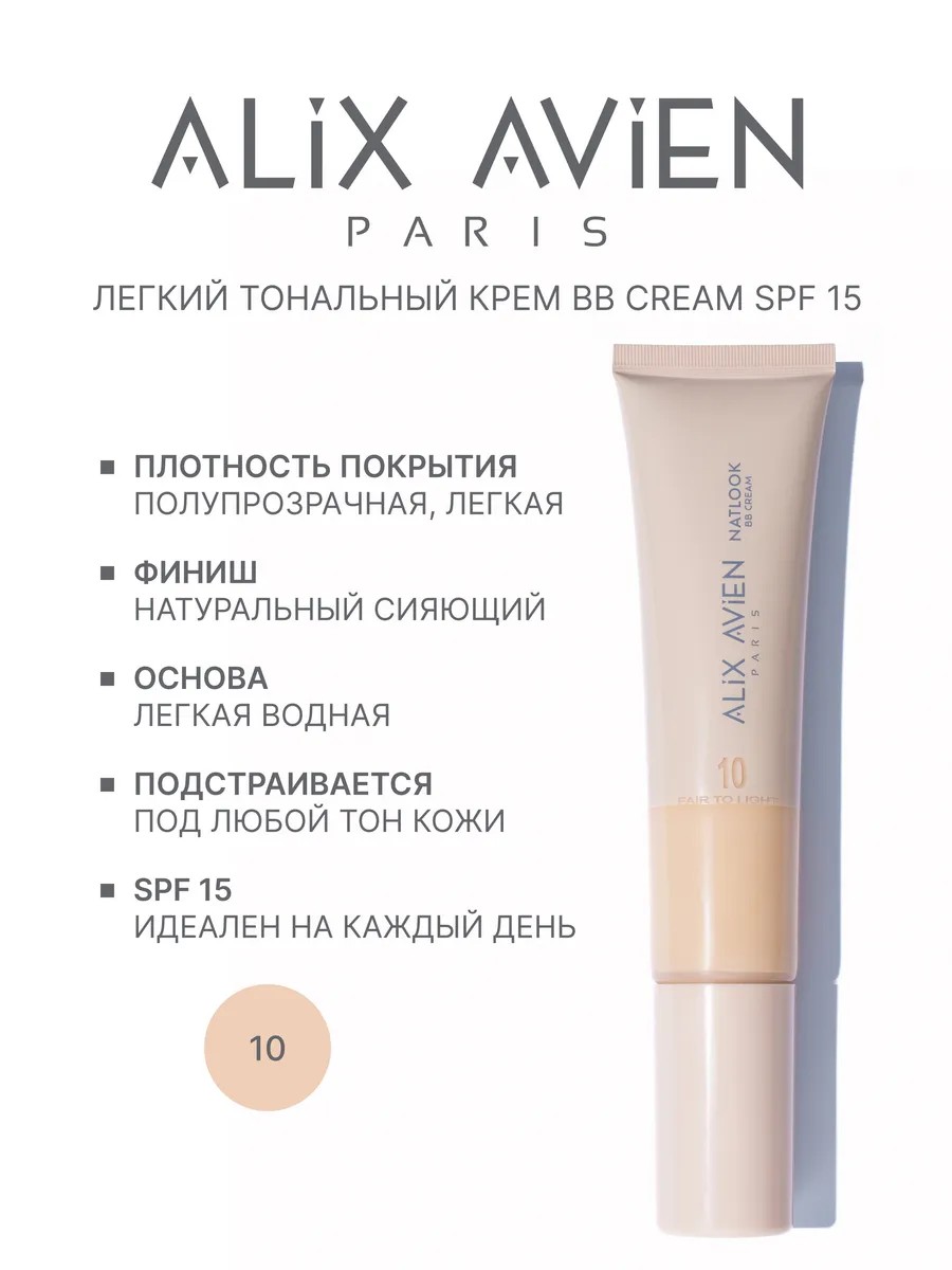 Тональный крем ВВ cream тональный от Alix Avien Paris в оттенке 10 FAIR TO LIGHT нейтральный светло-бежевый для белоснежной кожи. Оттенок идеально подходит даже для самой светлой тонкой кожи. ББ крем подарит вам ровный, безупречный тон при макияже лица без необходимости интенсивного нанесения продукта. Фактор УФ защиты SPF 15.