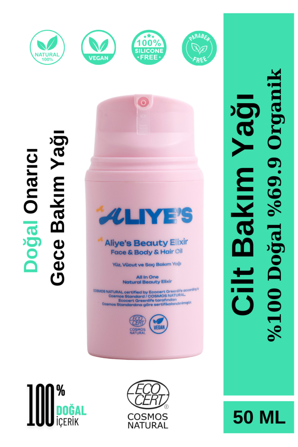 aliyes beauty elixir 0 Natural Night Care Oil - Face Body and Hair Care Oil - Ecocert Cosmos Natural Certified